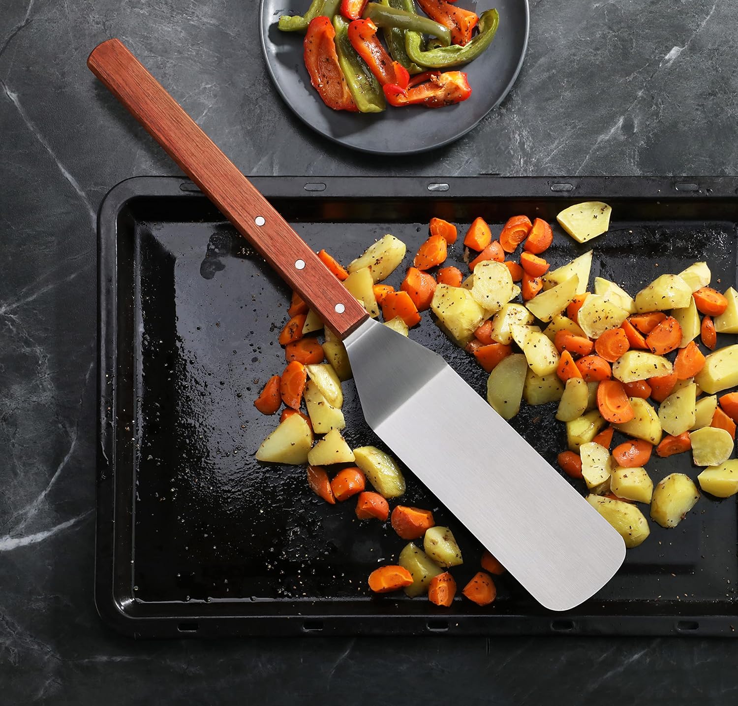 - Exceptionally well crafted solid and perforated turner set|Commercial quality can be used In restaurants food shops catering halls Etc.|Stainless steel blade with wooden handle securely riveted|Easy to clean and hand wash