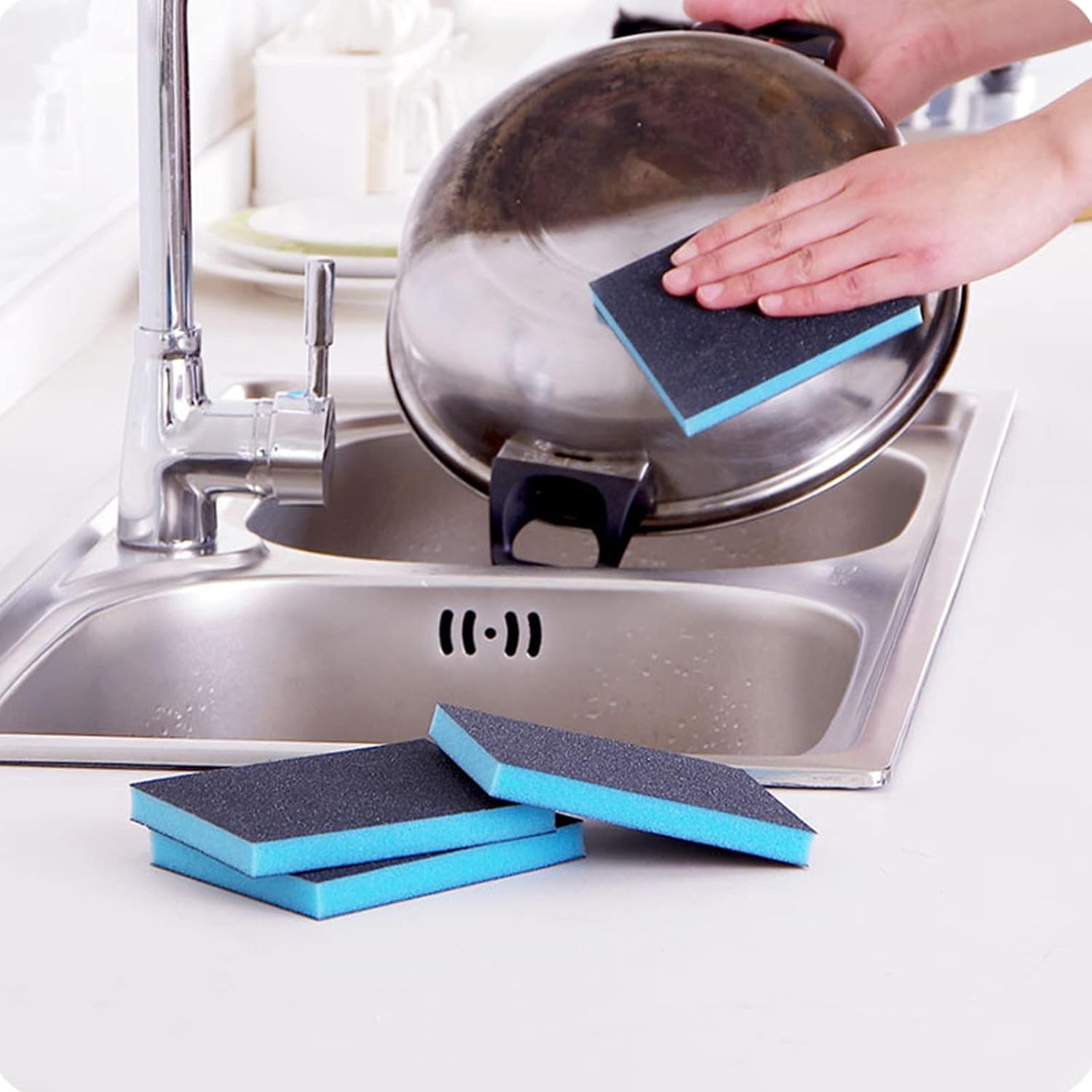 - Sponge size: 3.94" x 2.75" x 0.39", sand size: 220 grit