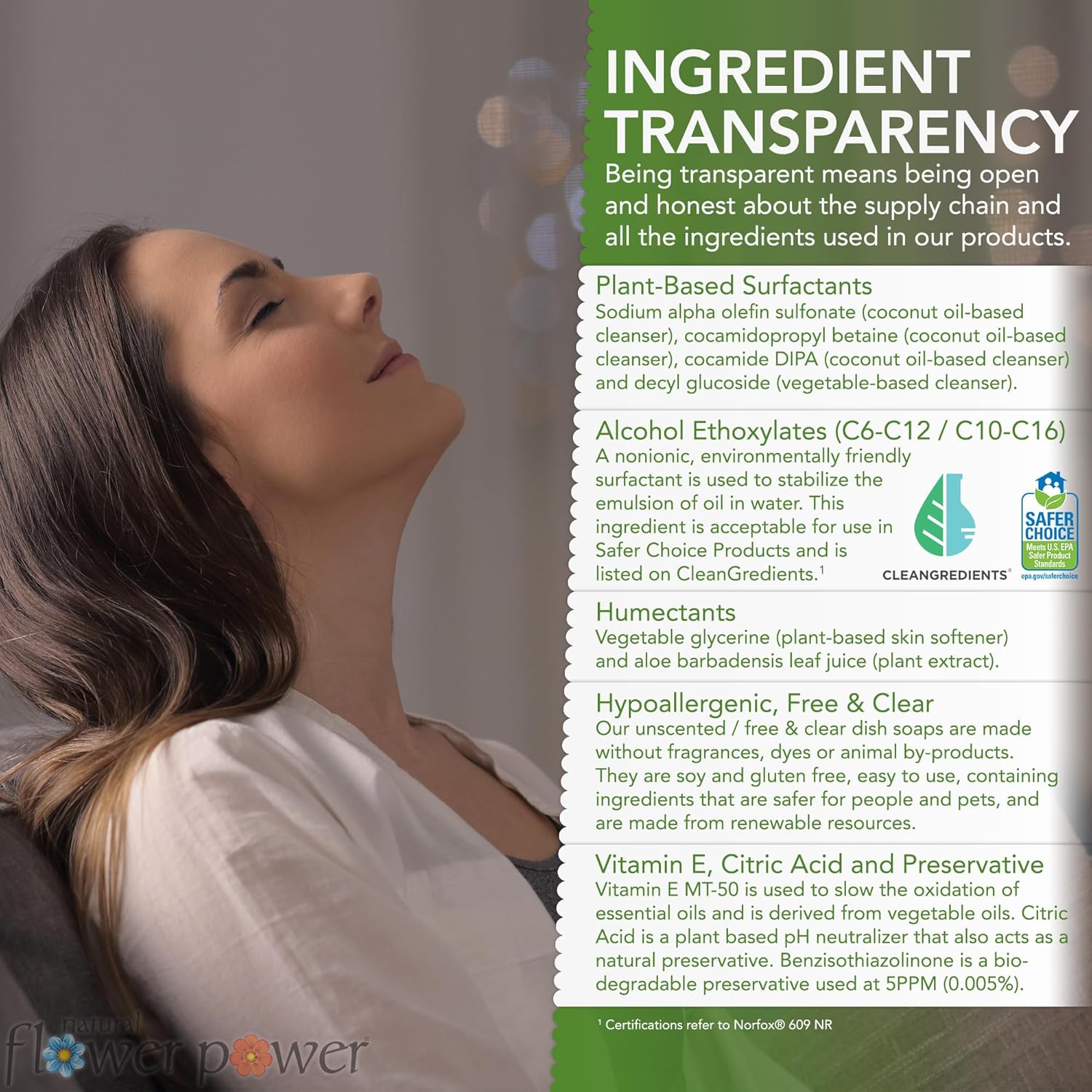 Liquid Dish Soap – Free & Clear (Unscented) – Plant-Based & Scented w/ Pure Essential Oils – Natural Dishwashing Detergent – Sulfate-Free Kitchen Soap – Vegan (16 Fl Oz 3 Pack)
