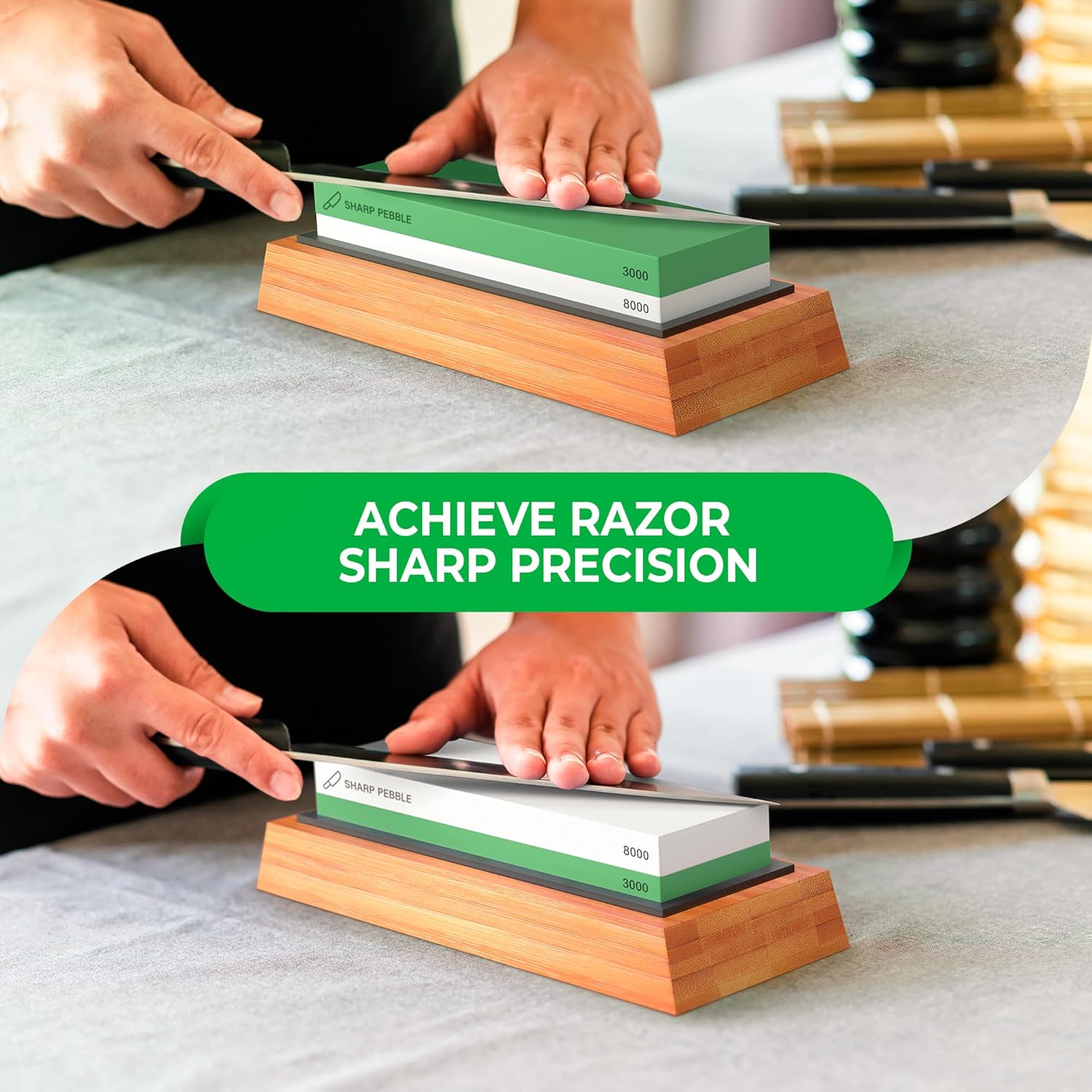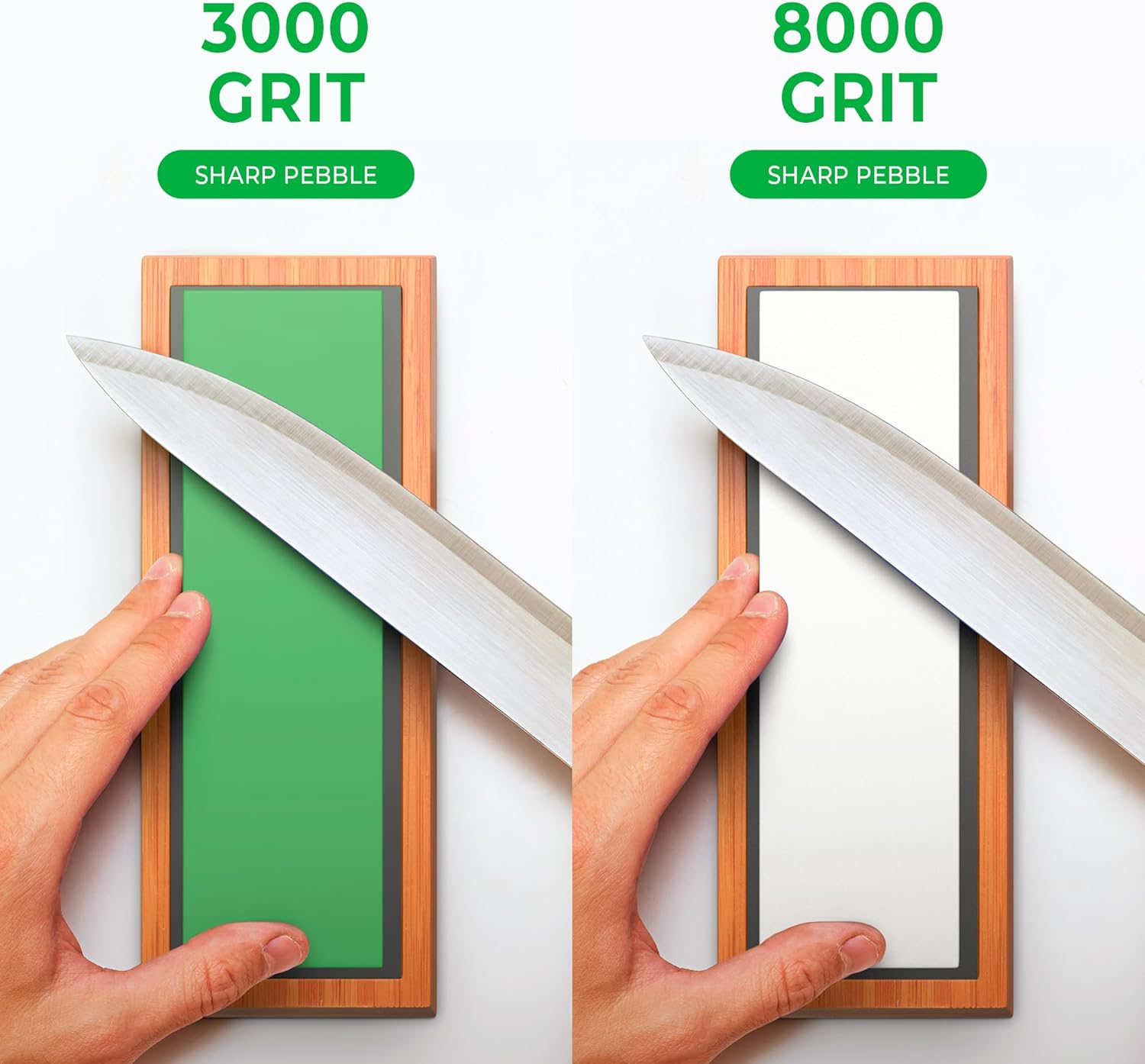 - Safety: Sharp Pebble sharpening stones for knives is designed for your safety, it comes with a Silicone Base to provide a totally stable platform and a Non-Slip Bamboo Base that firmly holds the wet stone while sharpening
