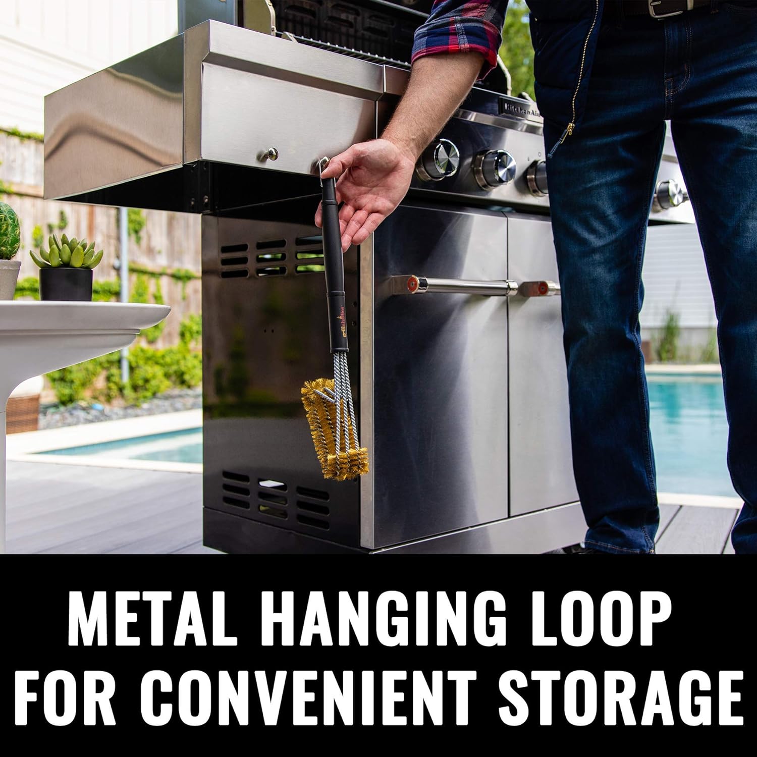 Grillaholics Brass Grill Brush – Safe BBQ Brush for Outdoor Cooking – Heavy-Duty Soft Bristle Grill Cleaning Tool for Porcelain & Ceramic Grates