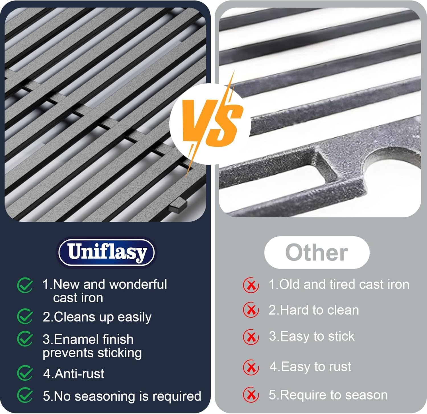 - 【Professional-Level Heat Retention & Searing】 Ideal for high-heat cooking and consistent temperature control. These for weber spirit 310 grill grates deliver even heat across the entire surface, locking in juices and leaving bold sear marks. Replace for weber spirit e310 grill parts with this cast iron set and enjoy an upgraded grilling experience with each cook.