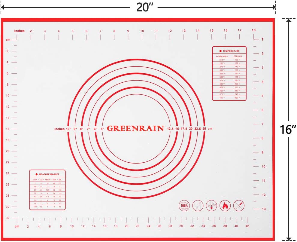 - ✔️ FOOD GRADE SILICONE: GREENRANIN Pastry Mat is made of premium silicone and glass fiber. It is safe, soft, durable and will not wrinkle or fade.