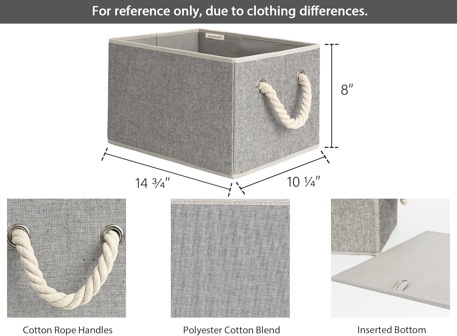 - Closet baskets feature two soft rope handles for comfortable grasping and easy carrying.