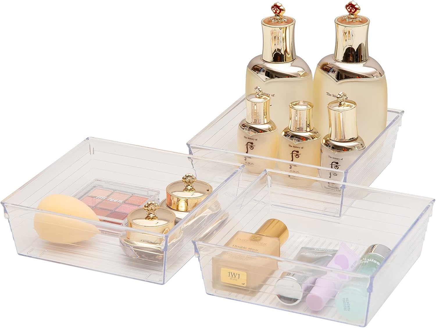 Backerysupply Clear Plastic Drawer Organizer Tray for Vanity Cabinet (6"×6"×2",Set of 8),Storage Tray for Makeup, Kitchen Utensils, Jewelries, and Gadgets…