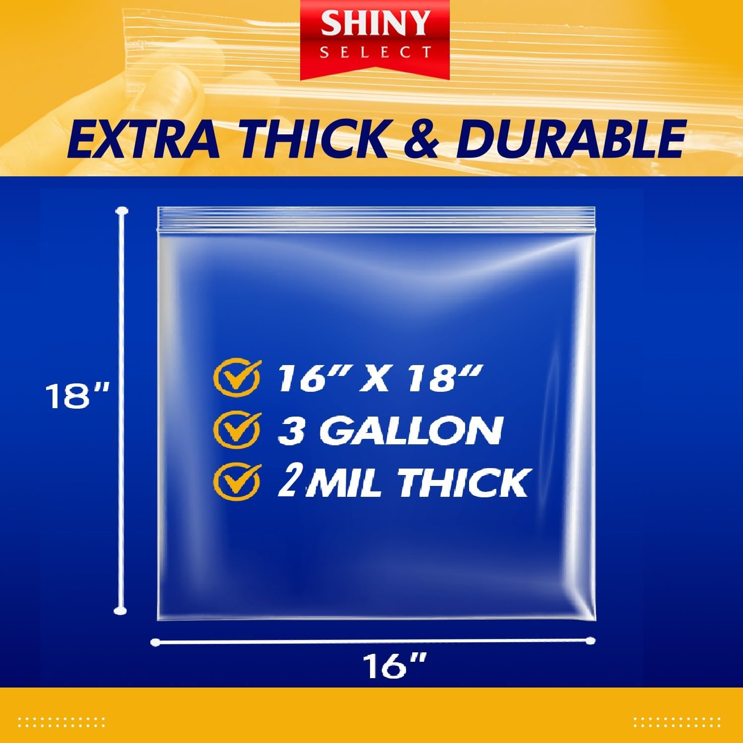 - HIGH-QUALITY, SPACIOUS STORAGE BAGS: Large and durable, measures 16" wide x 18" tall, our 2 Mil. thick plastic bags will keep your food fresh and your belongings safe and secure. Theyβre clear so you can easily see the contents inside, and include a resealable closure for easy sealing and protecting the items inside.