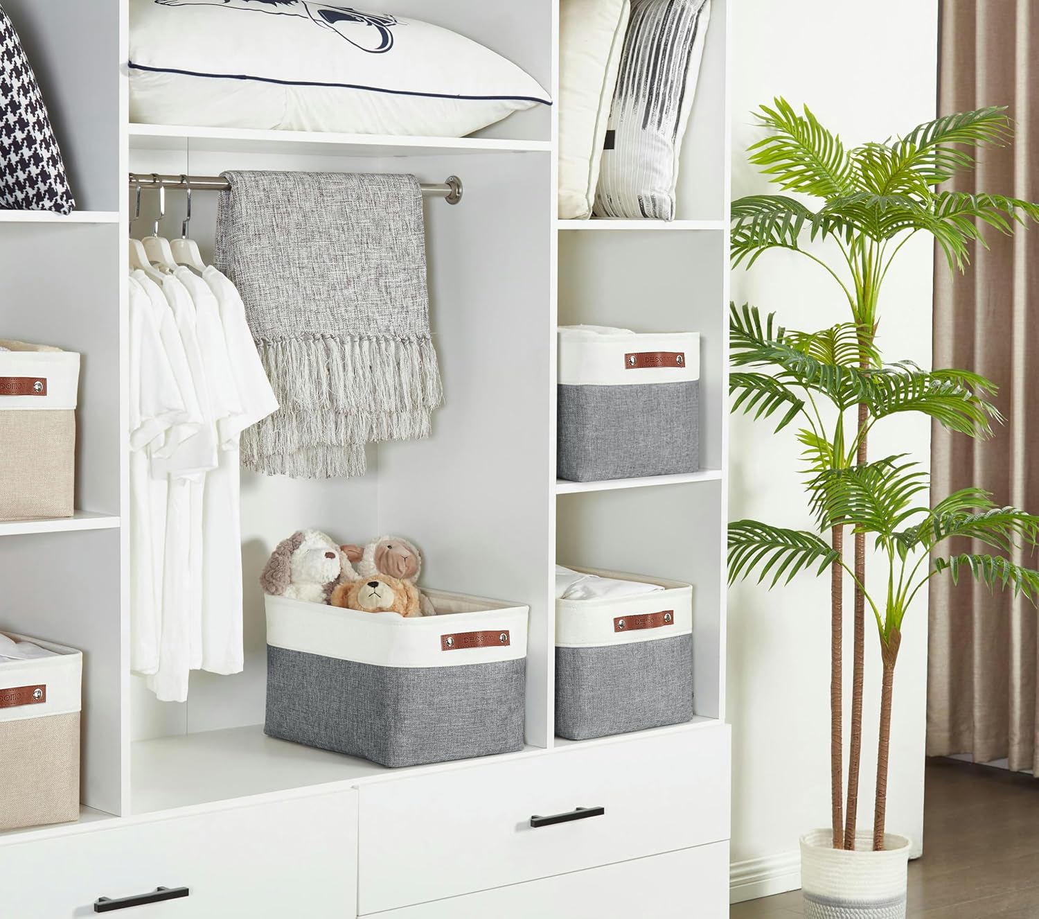 - Multi-purpose: These organizer bins effortlessly handle all your storage needs - perfect for shelves, clothing, linen closets, baby nurseries, kids' playrooms, and storing towels, blankets, bedsheets, and more to keep your space tidy.
