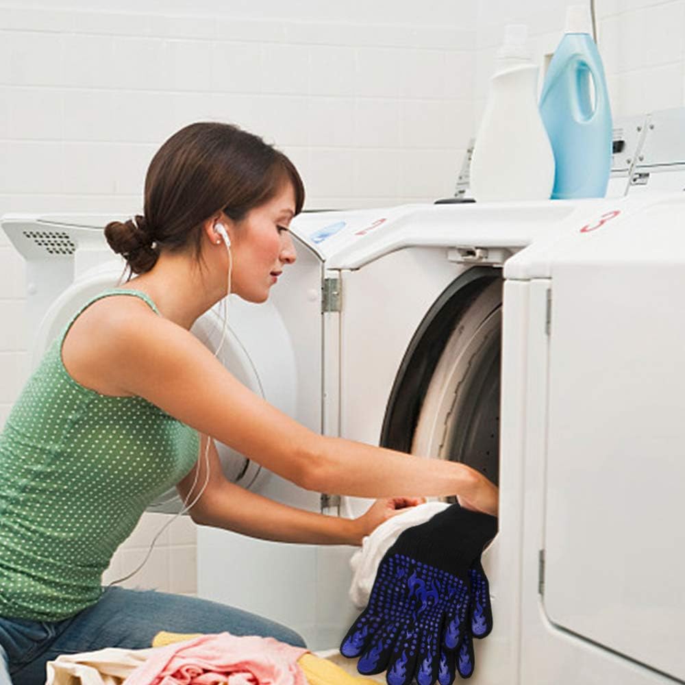 - Easy to clean and store: Our heat resistant gloves can be easily cleaned either by machine washing or hand washing. The inner side of the cuffs features a convenient loop for hanging and drying, making storage a breeze.