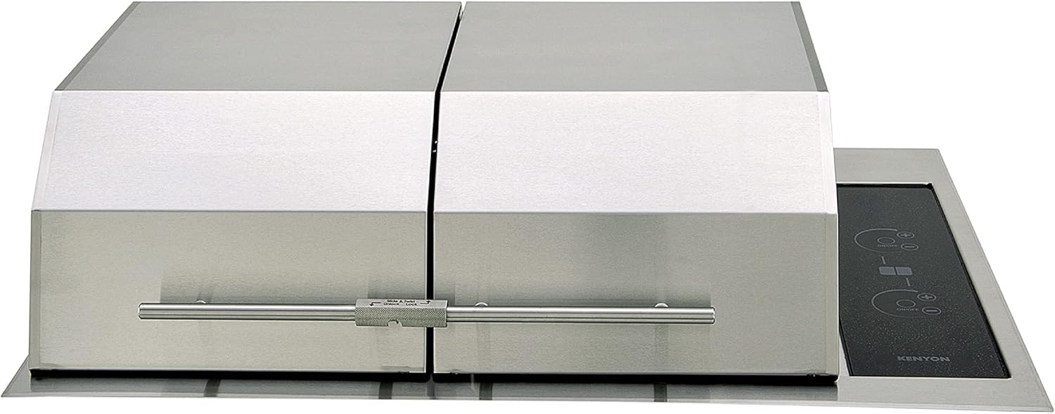Kenyon Texan Built-In Electric Grill for Stone Counter, Standard Lite-Touch, Stainless Steel Grill with Split Lid for Indoor and Outdoor Use, 2 Burners, Quick Heat Up, Dishwasher Safe Grate, 240V