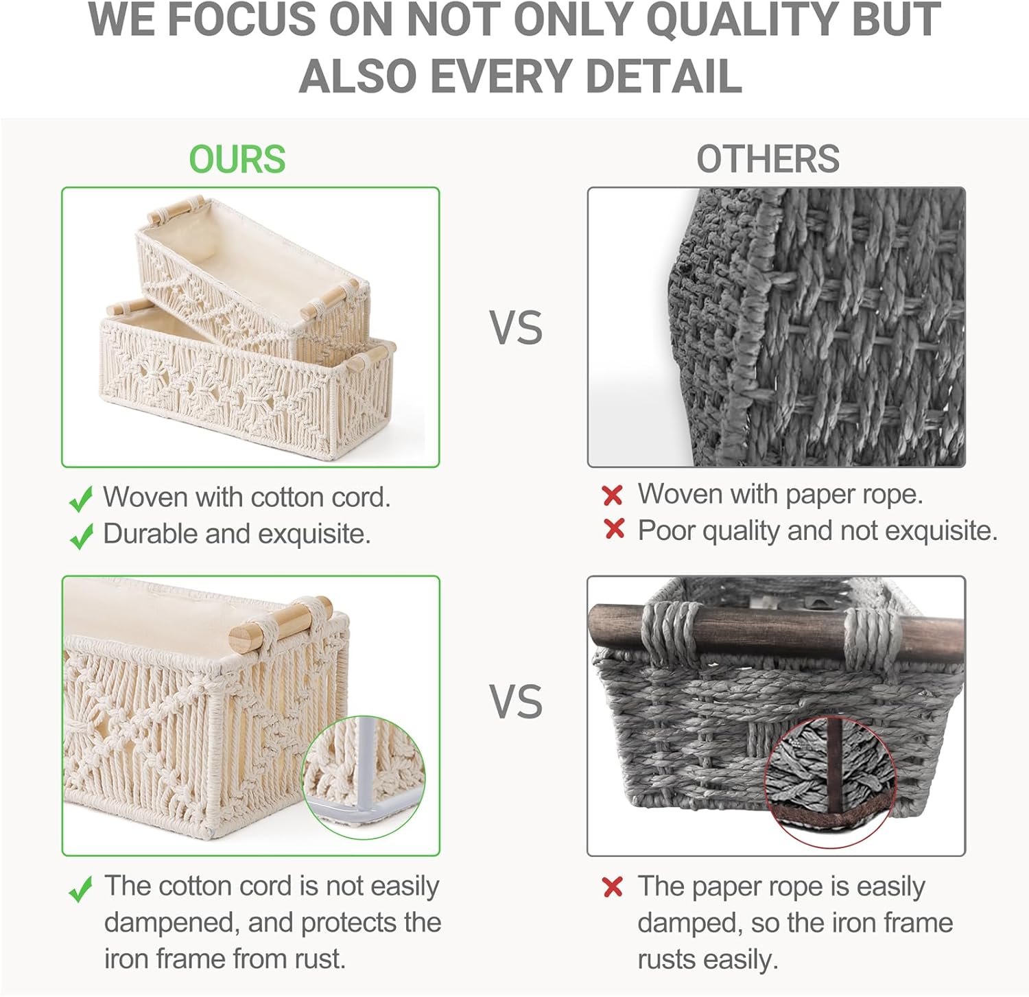 Mkono Macrame Storage Baskets Boho Decor Box Handmade Woven Decorative Countertop Toilet Tank Shelf Cabinet Organizer for Bedroom Livingroom Home, Set of 2, Ivory