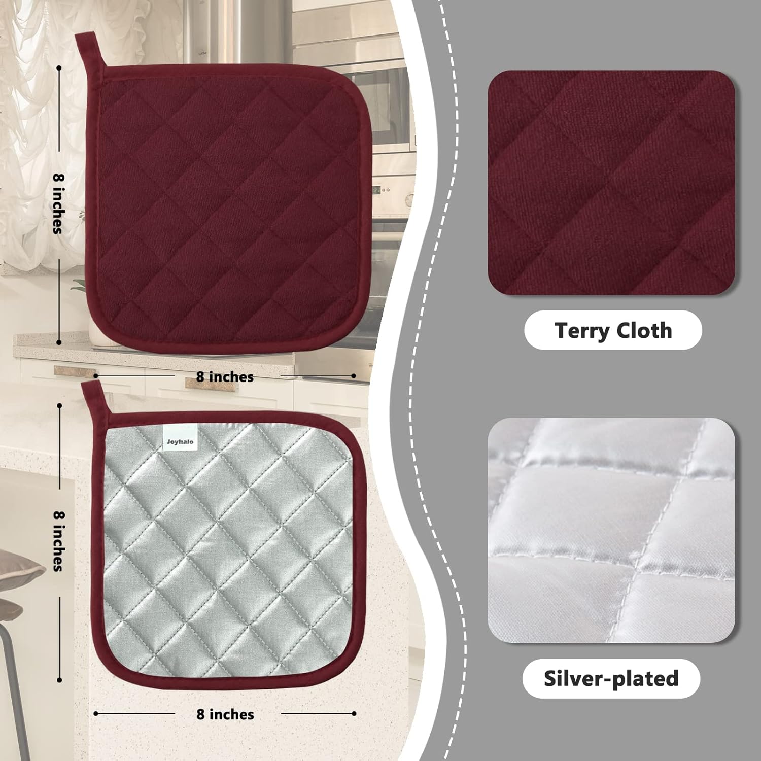Joyhalo 6 Pack Pot Holders for Kitchen,Cotton Oven Holder with Great Heat Resistance,Non Slip Hot Pads for Kitchen Clearance,Dark Red