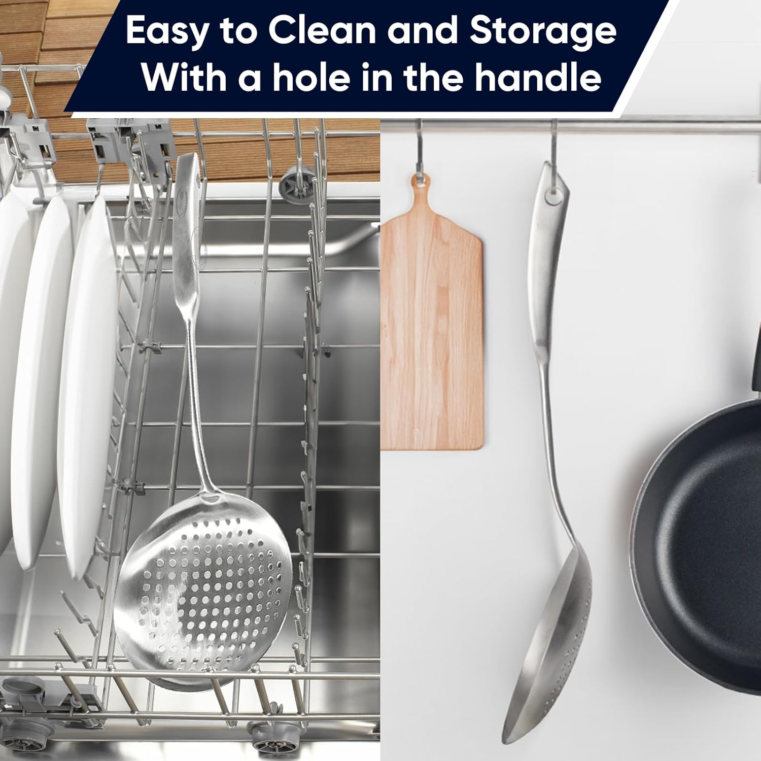 Newness Slotted Spoon, [Rustproof, Integral Forming, Durable] 304 Stainless Steel Widen Skimmer with Vacuum Ergonomic Handle, Comfortable Grip Design Strainer Ladle for Kitchen, 16.93 Inches