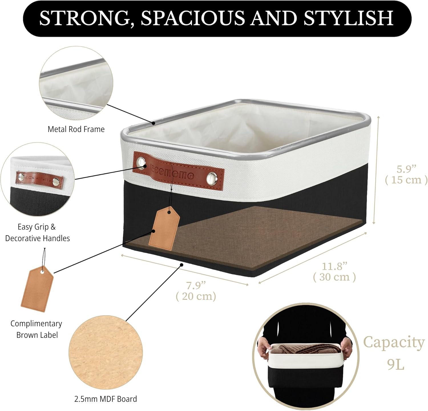 DECOMOMO Small Storage Basket, Closet Storage Bins, Baskets for Organizing Shelves (Black & White, Small - 6 Pack)