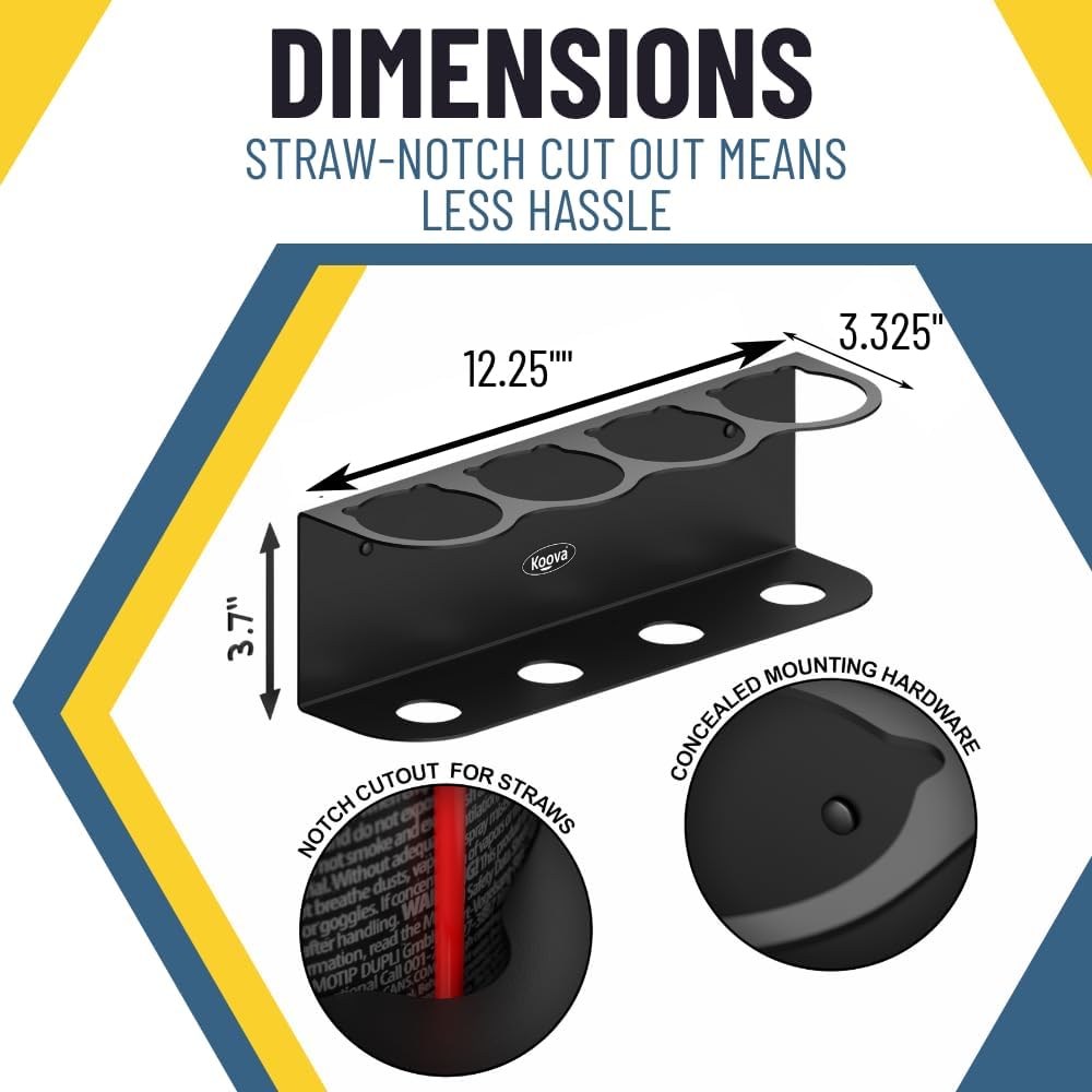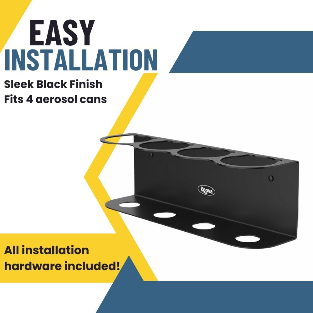 Koova 4 Aerosol Spray Can Holder | Easy Install Wall Mount | Heavy-Duty Powder Coated Steel Storage Rack for Garage & Home | Craft Workspace Paint Bottle Organizer | Hardware Included | USA Made