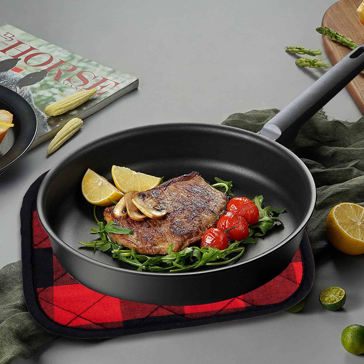 - THICKER ENOUGH HOT PADS: Use as hot pads for hot dishes, hot pots and pans, cast iron cooking pots. Protect countertops from scratches, placemat under heavy cast iron set.