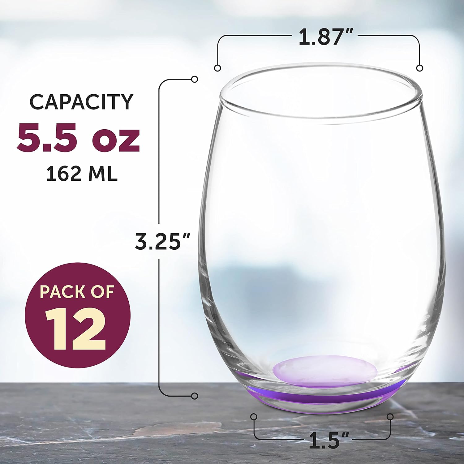 DISCOUNT PROMOS Stemless Wine Glasses by ARC 5.5 oz. Set of 12, Bulk Pack - Perfect for Hotel, Bar, Restaurant or Lounge - Purple