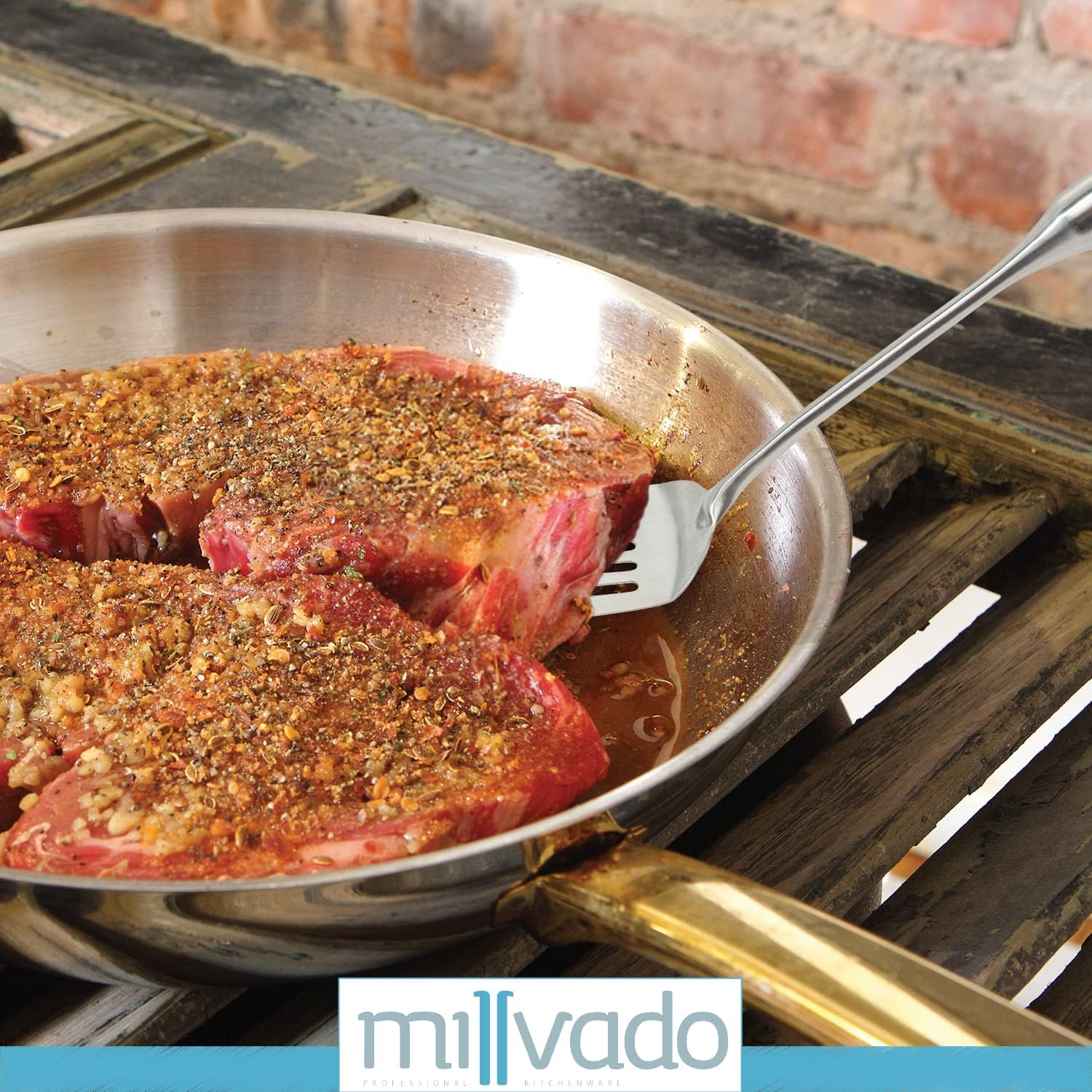 - SOLID STAINLESS STEEL: Stop your utensils from damaging your food and purchase the best metal spatula for cooking. While some utensils fray as they're used, this turner will maintain its glamorous look, even after much grilling, frying and flipping. Works well with a cast iron skillet or grill, too.