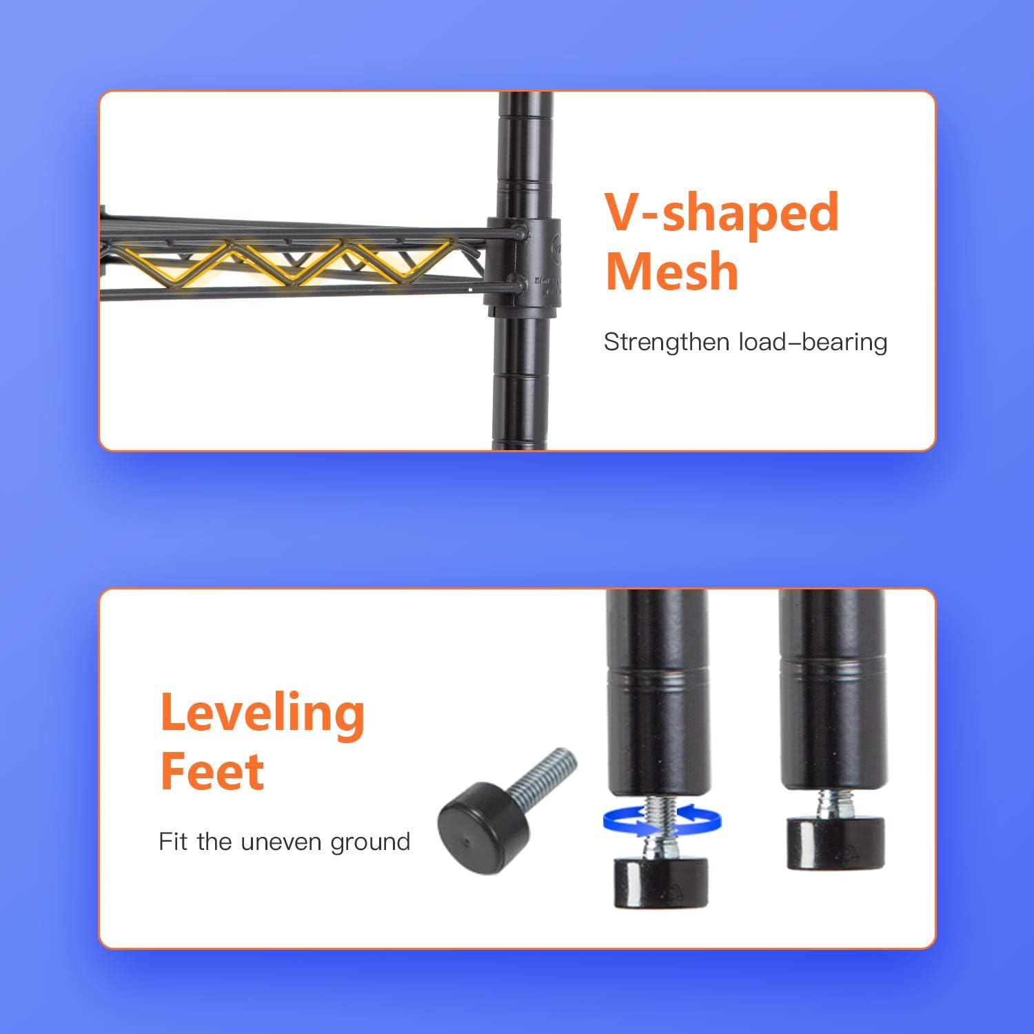 - ✔【Adjustable Height】 Enjoy a completely customizable metal shelving unit. The build allows for height adjustments - giving you the freedom to adjust accordingly to your needs. Comes with easy adjustable clips to secure and stabilize each shelf. The multi-purpose shelf rack is perfect for garage shelving, kitchen storage, pantry shelving, and more.