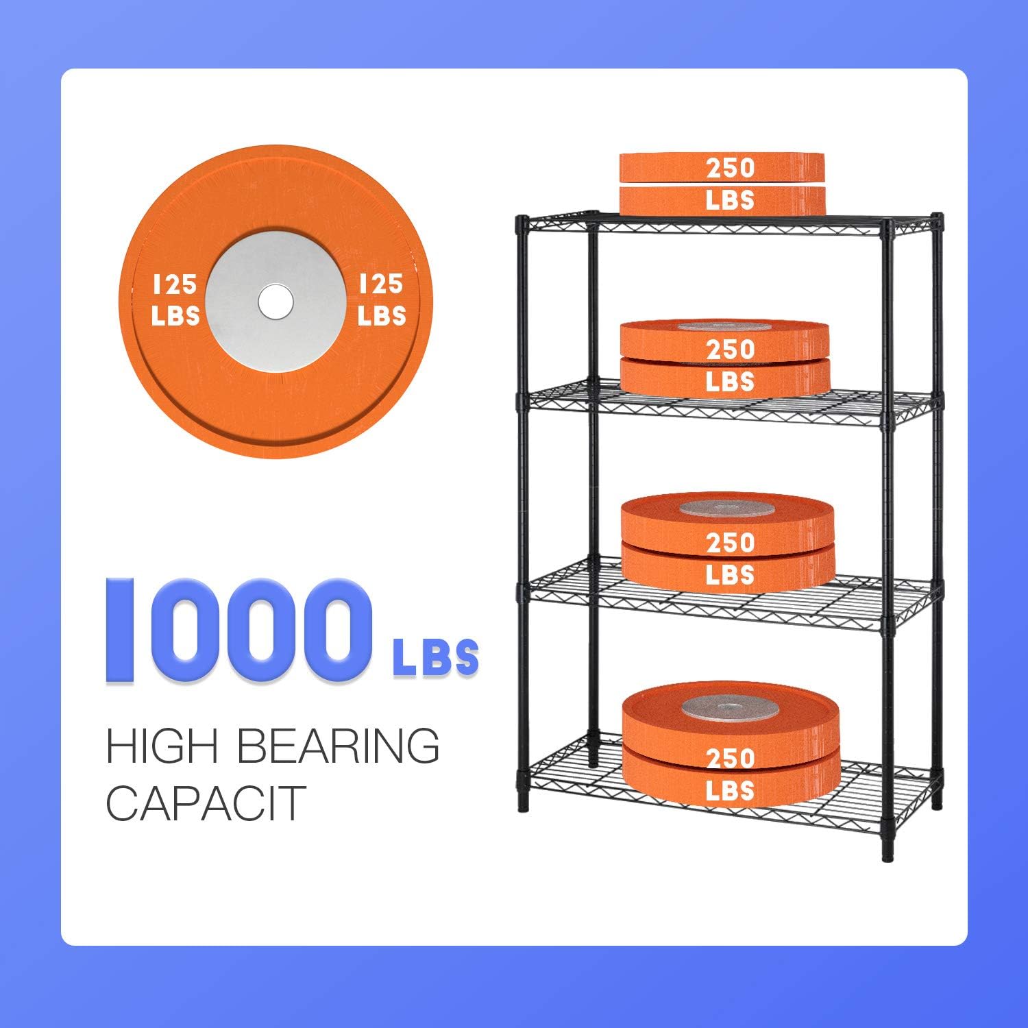 - ✔【Strong Weight Capacity】Without wheels, the weight limit for each shelf is 250 pounds and the total weight limit for the entire shelf is 1000 pounds.commercial