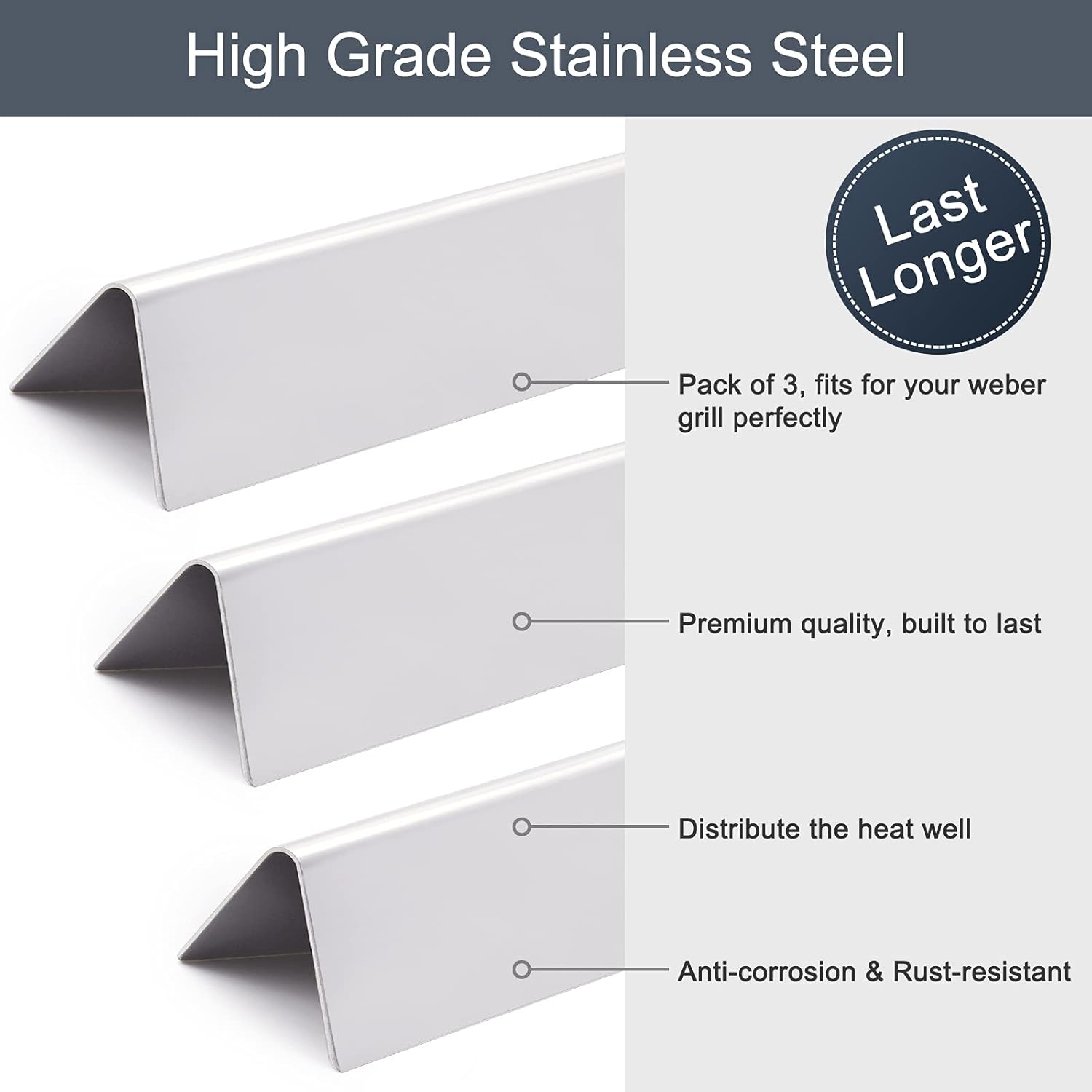 - 【Stainless Steel Flavorizer Bars Specifications】Heat Plate Dimensions: 15.3”L x 3.5”W x 2.5”H, Material: Stainless Steel; ★ 【What U Get】3 x flavor bars replacement parts for weber Spirit 200 Series Gas Grills ; ★ 12-Months quality assurance and lifetime customer service provided, have the confidence that these parts will last and just contact us if there are any issues about the flavorizer bars.