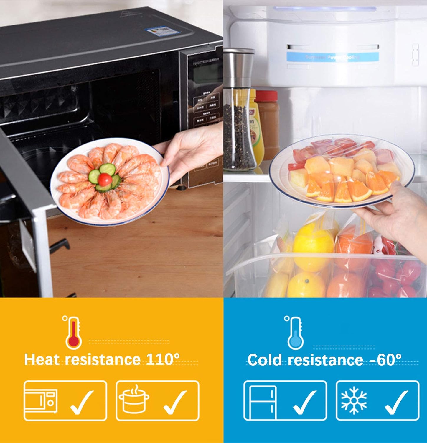 - 【Safe Materials】Our transparent plastic wrap is made from professional food grade materials(BPA free). You can safely put it into the microwave oven for use, but not in the oven or the top of the stove. Take care to leave at least 1 inch of plastic wrap open to allow excess steam to escape.