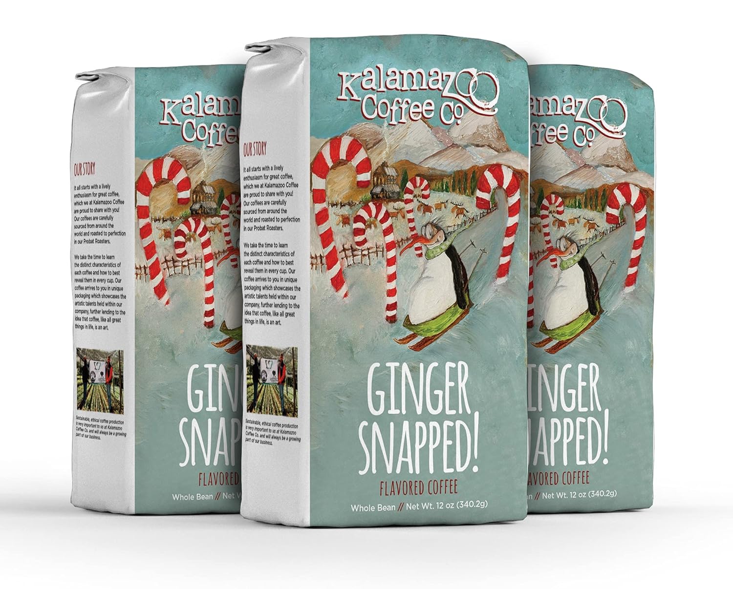 KALAMAZOO COFFEE COMPANY Ginger Snapped Whole Bean Coffee - Holiday Flavored Coffee | 12oz Bag (3 Pack)