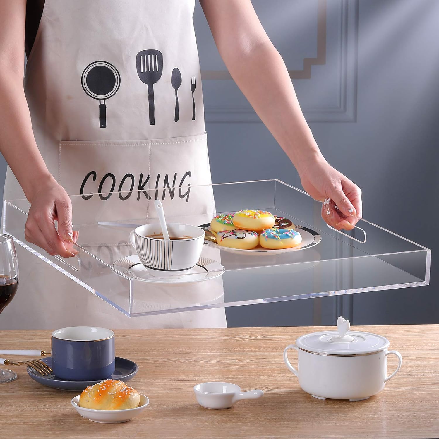 Clear Acrylic Ottoman Tray with Cutout Handles 20x20 Inch Over Sized Serving Tray, Organizer Rubber Boot Tray Decorative for Living Room Bedroom,Bathroom and Entryway Kitchen Tabletop
