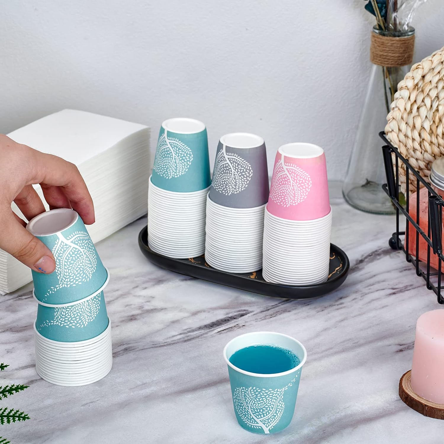 - Package Contents: 100 packs of each color, including 300 packs of bathroom cups 3 oz paper, perfect for mouthwash cups, bathroom cups, drinking cups, medicine cups and rinse cups