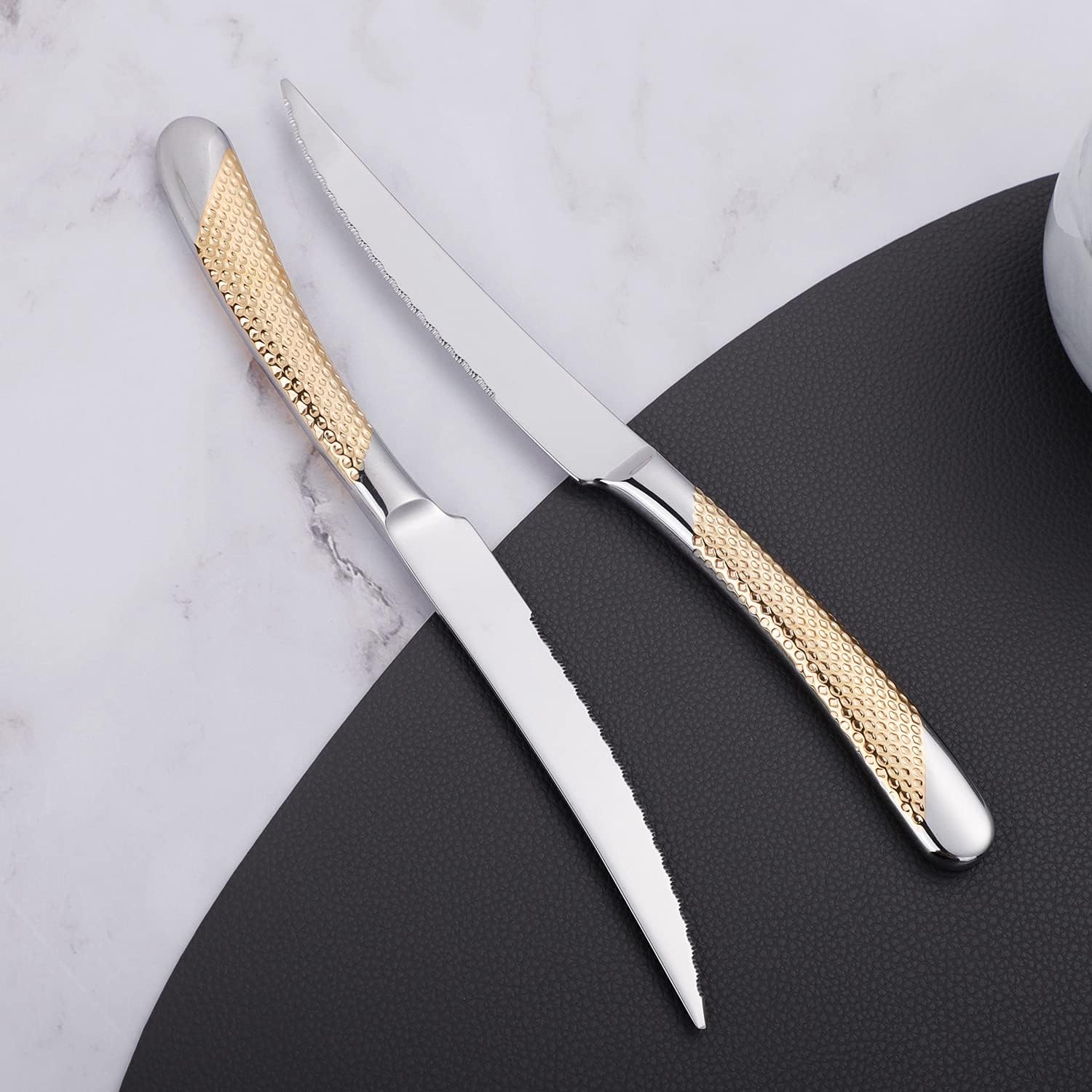 - 2.【SUPERIOR DESIGN】:Mirror polished, smooth edges without hair spots, moderate length, moderate weight, concave handles, comfortable to hold. Elevate daily meals to exquisite dining experiences