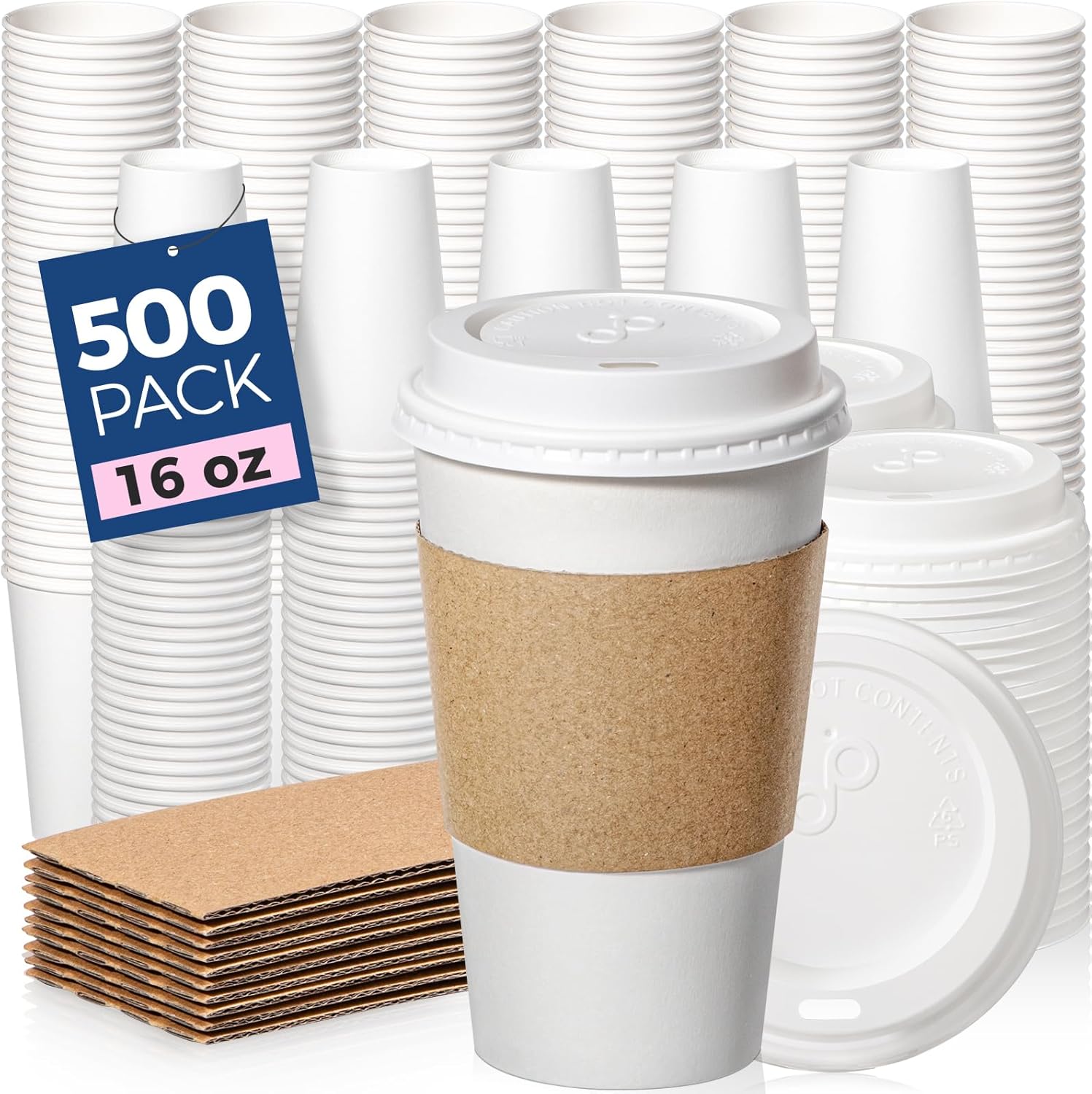 Fit Meal Prep 500 Pack 16 oz Disposable Coffee Cups with Lids, Sleeves, Leak-Proof To Go Coffee Cups with Lids, Durable Hot Paper Cups for Home, Office, Party, Business