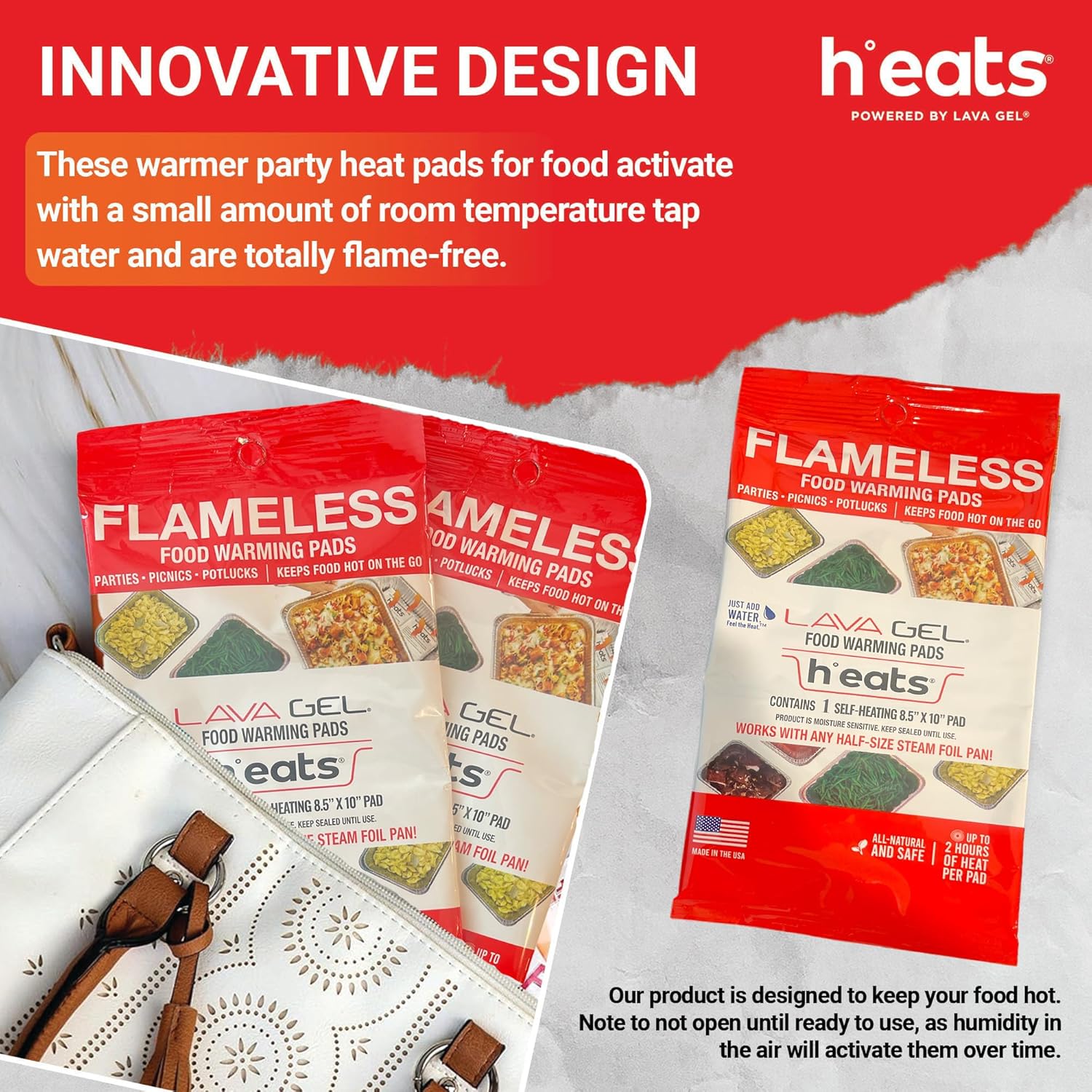 - Disposable Food Warming Pads: Available in packs of 2, our h°eats pads provide a convenient solution for all your food warming needs, whether for parties, potlucks, or daily kitchen use, ensuring your meals stay deliciously warm for extended periods.