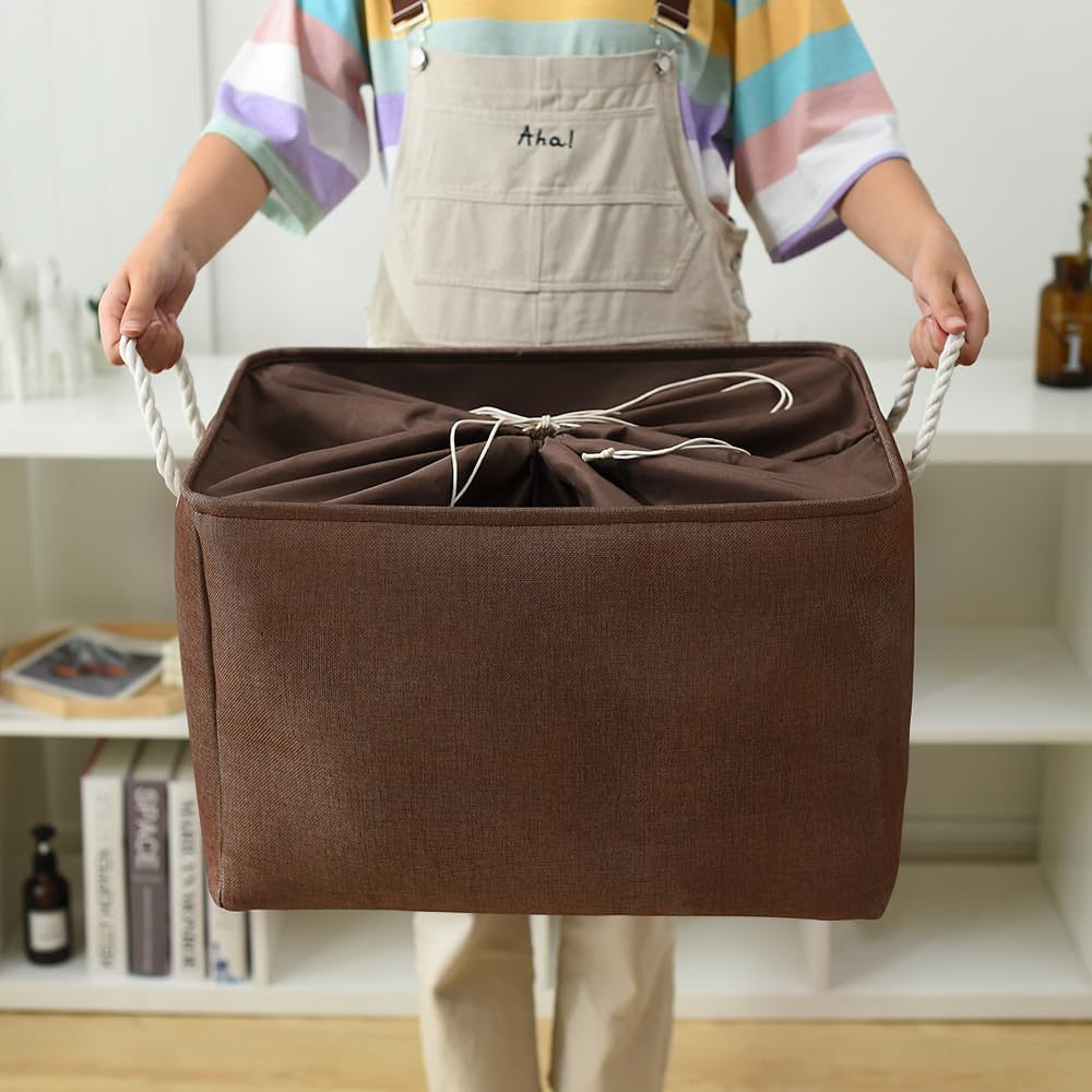 TheWarmHome Organization and Storage for Organizing - Extra Jumbo 3 Pack 20.5x15.7x13.8 inch Fabric Storage Bin for Shelves, Storage cubes for Decorative Shoes Towel Blanket Closet (Brown)