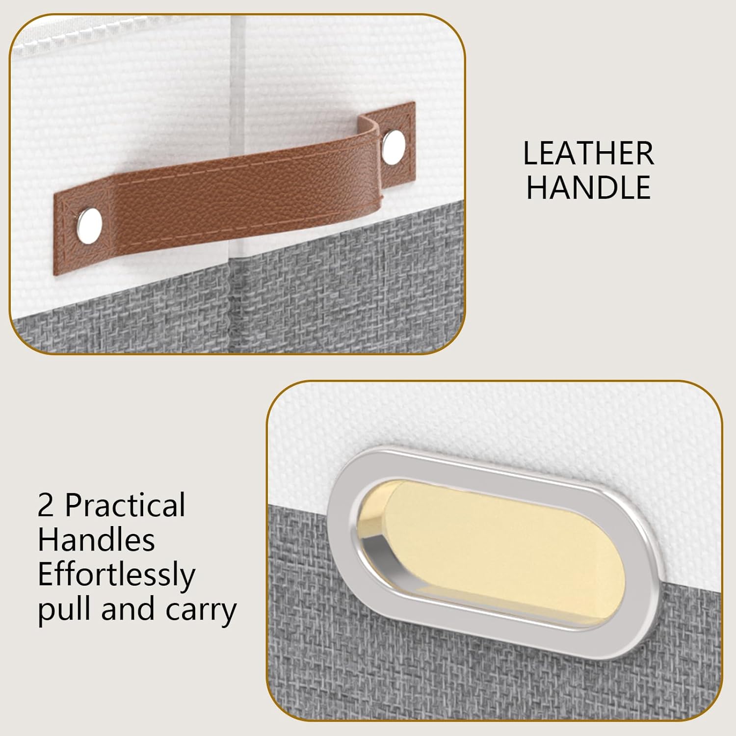Yawinhe Foldable Storage Baskets for Shelves, Fabric Closet Organizers, Bins with 3 Handles, Cubes for Clothes, White/Grey, 15''Lx9.8''Wx8.3''H, 6-Pack