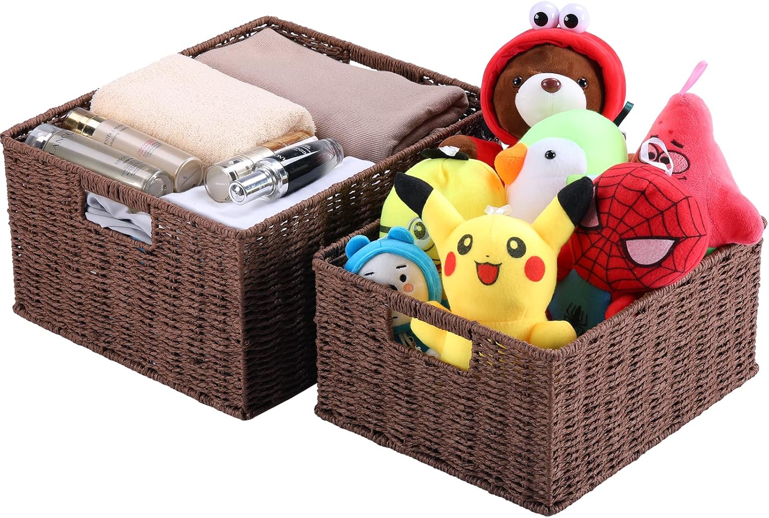 - Built-in Convenient Handles: the two handles at the top make the woven baskets for organizing easy to carry from room to room as needed.