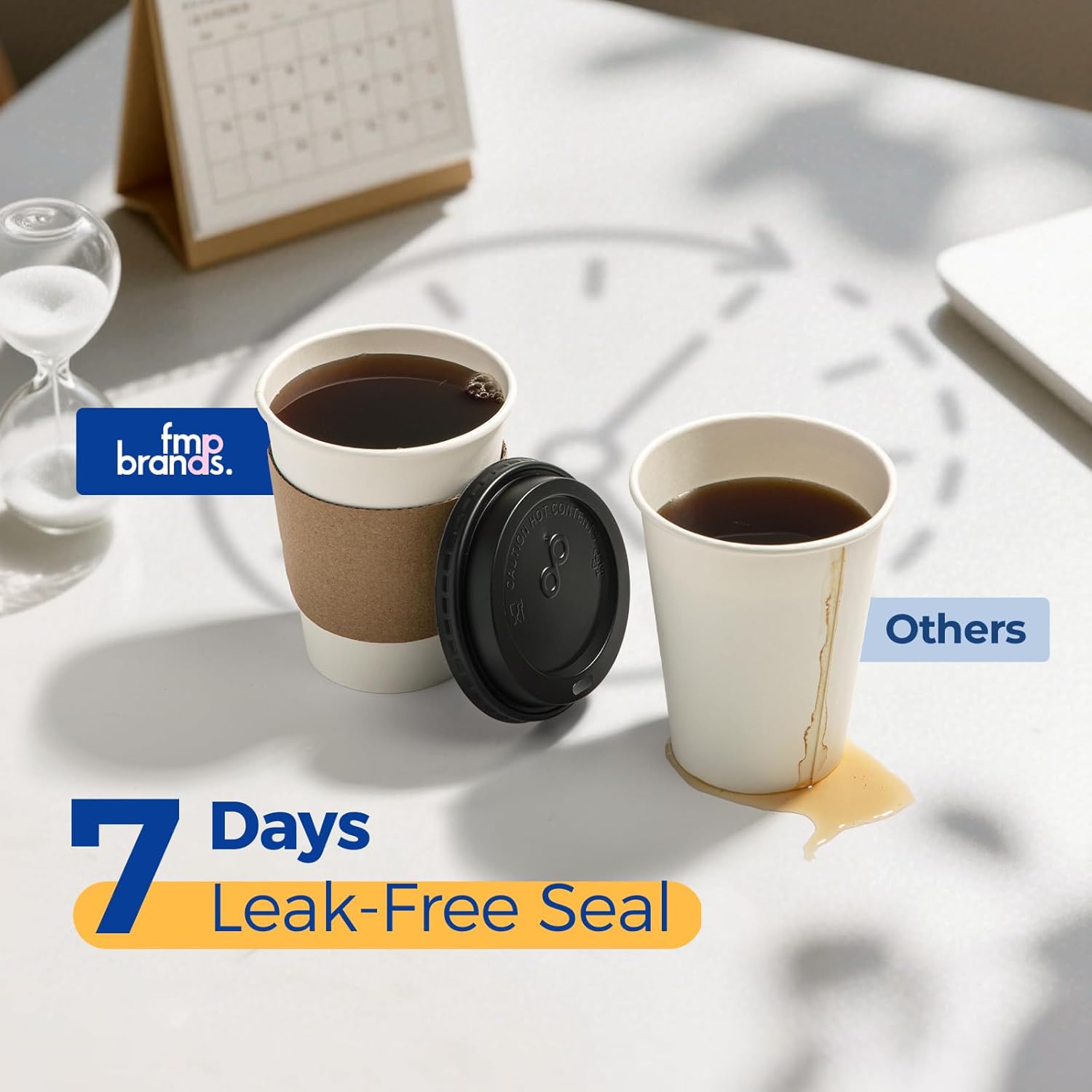 - Ideal Hot Cups with Lids: Enjoy a spill-free experience with secure lids that retain beverage temperature. Each disposable coffee cup has a rolled rim for smooth, leak-free sipping and an insulated sleeve to keep your hands comfortably protected.
