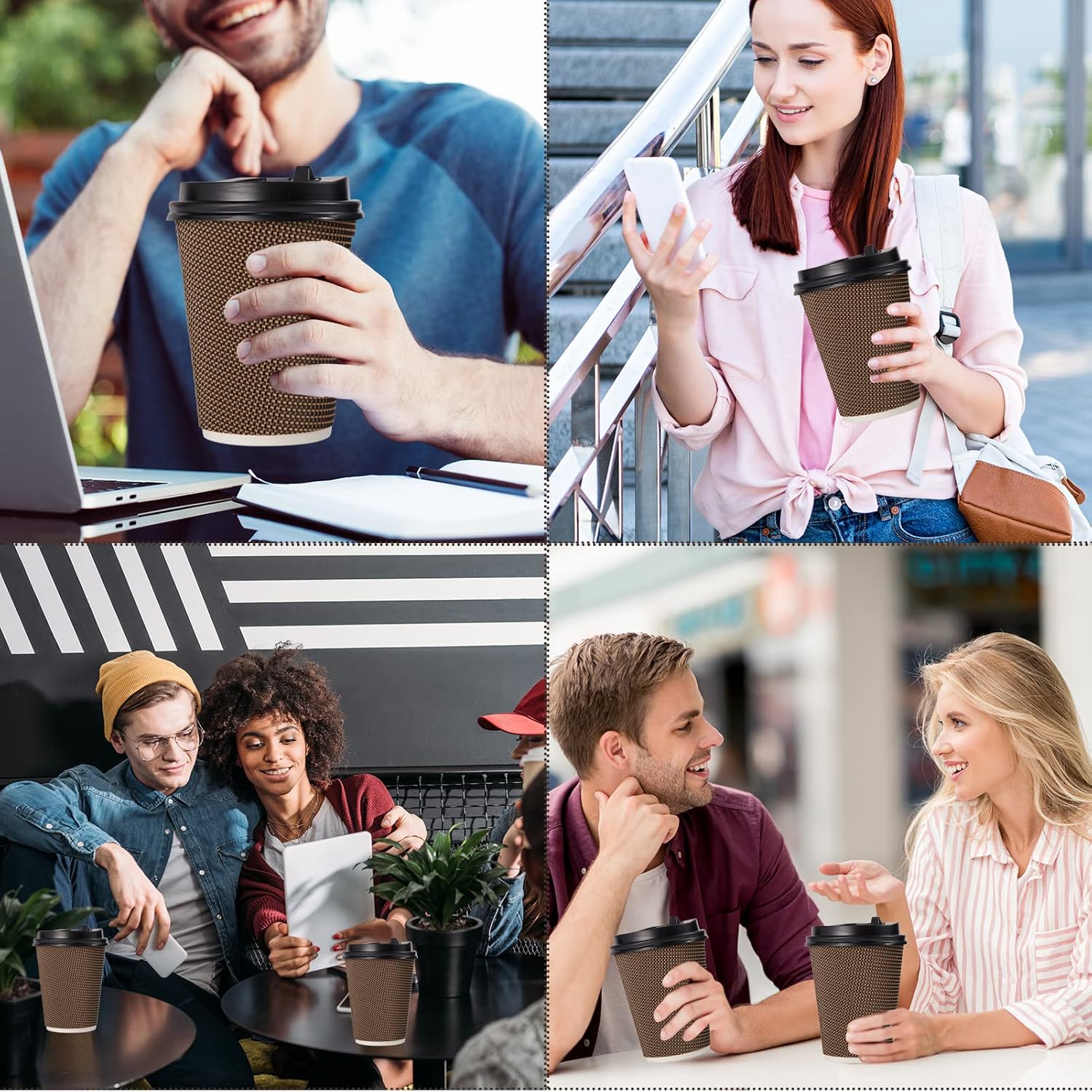 LITOPAK 80 Pack 16 oz Paper Coffee Cups, Insulated Ripple Wall Paper Cups with Lid and Straws, Three Layer Insulated Hot Beverage Cups for Hot Drinks, Coffee Cups for Parties, Picnic, and Travel