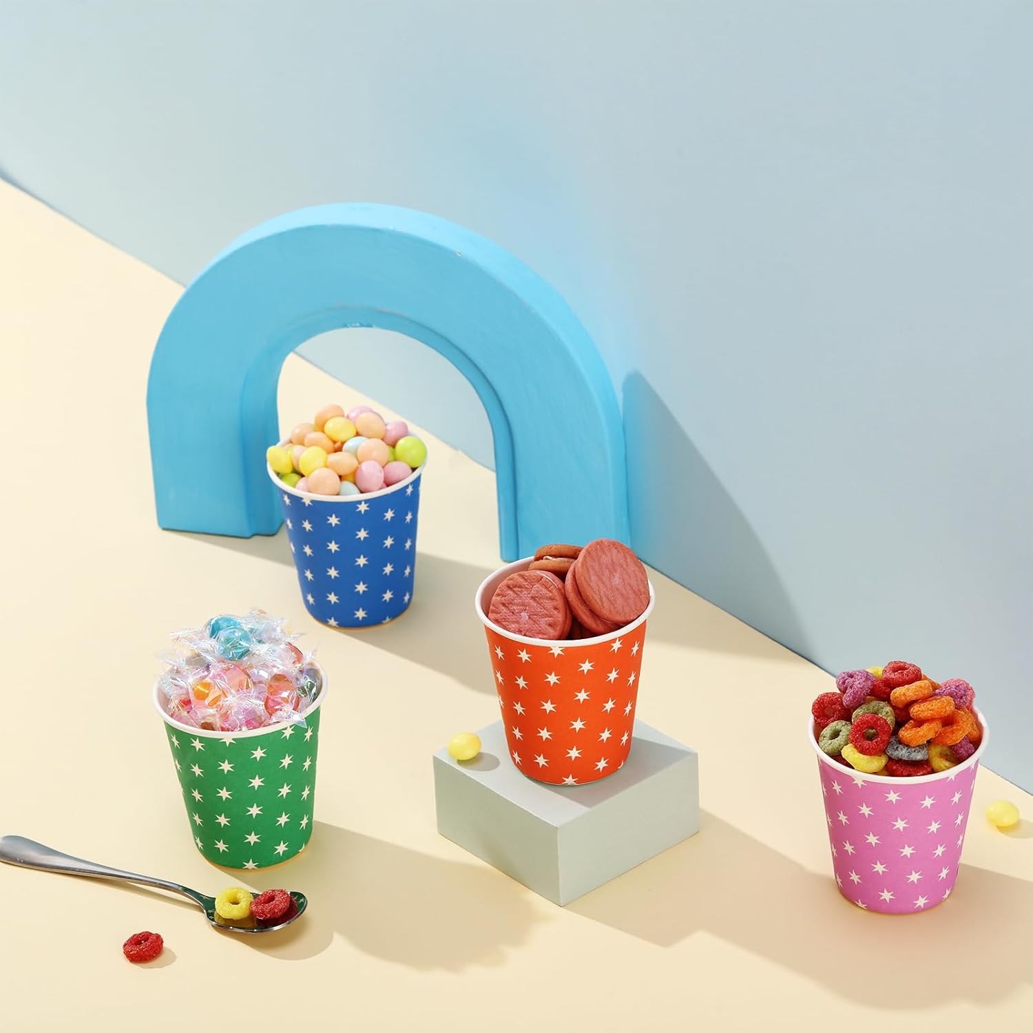 500 Pack 5oz Paper Cups, Multicolor Paper Disposable Cups, Small Mouthwash Cups, Cold Beverage Drinking Cup for Party,Travel and Event (Stars)