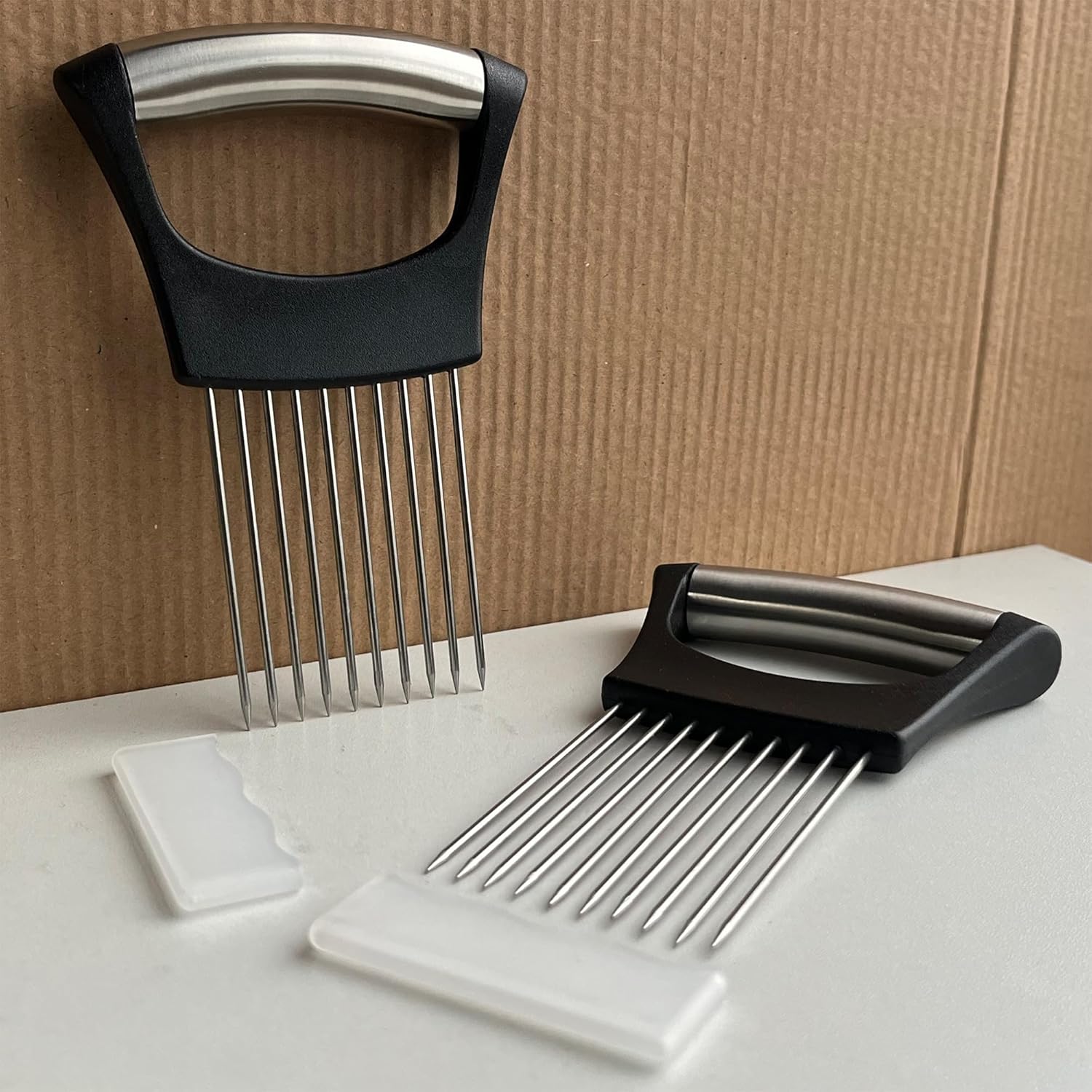 - 10 Prongs: The onion chopper is design with 10 prongs; which is sharp and sturdy. It can penetrate the onion to secure it in place during slicing, prevent the onion from slipping or rolling, providing stability and safety.