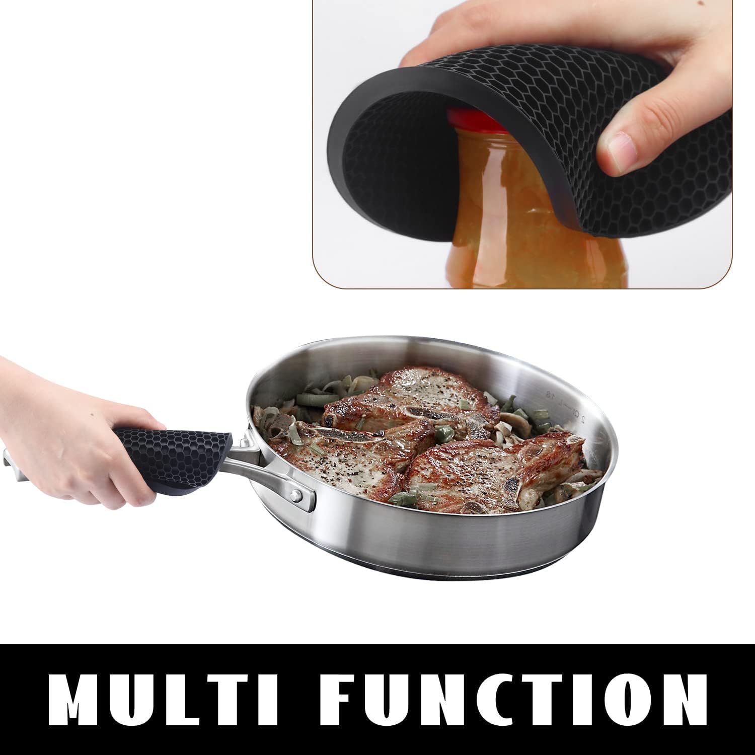 - 🎯PREMIUM FOOD-GRADE MATERIAL - The black round silicone potholders are made of 100% BPA-free durable silicone; durable and sturdy. Our 4 pack round silicone trivet mats won’t break and won’t scratch surfaces. Slip-Resistant, and flexible enough to comfortably grab a hot dish.