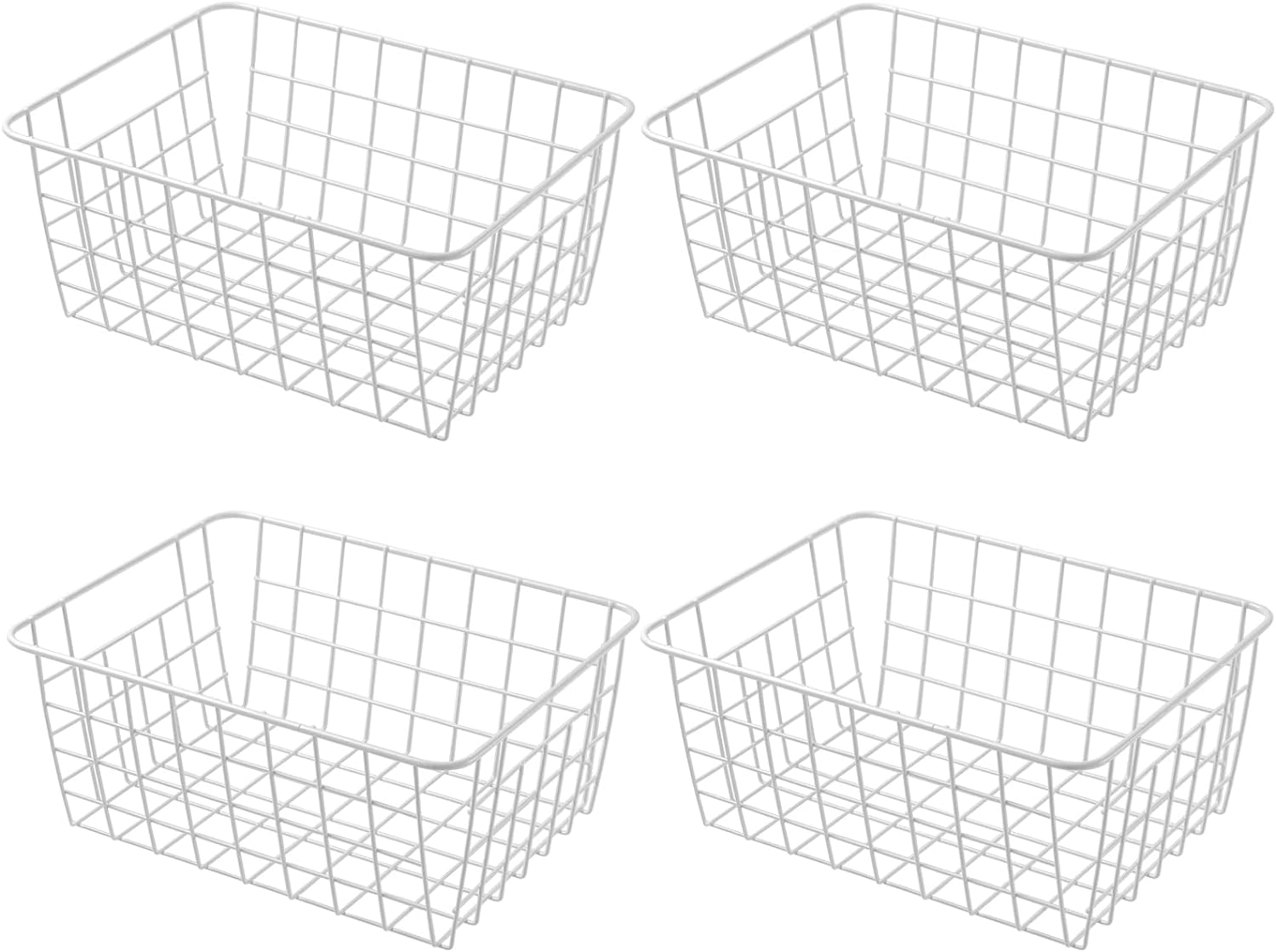 11" Upright Freezer Storage Baskets, White Wire Storage Bins Small Bakset for Freezer, Pantry, Bathroom Organizing, Set of 4