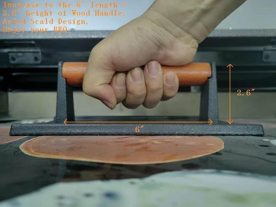 - 【Commercial Grade Accessories for Griddle】 Cast iron flat grill press, they’re used by real griddle masters. HOMENOTE offers you professional chef-level flat top grill accessories for Blackstone so you can make your own restaurant-like cuisine at home.