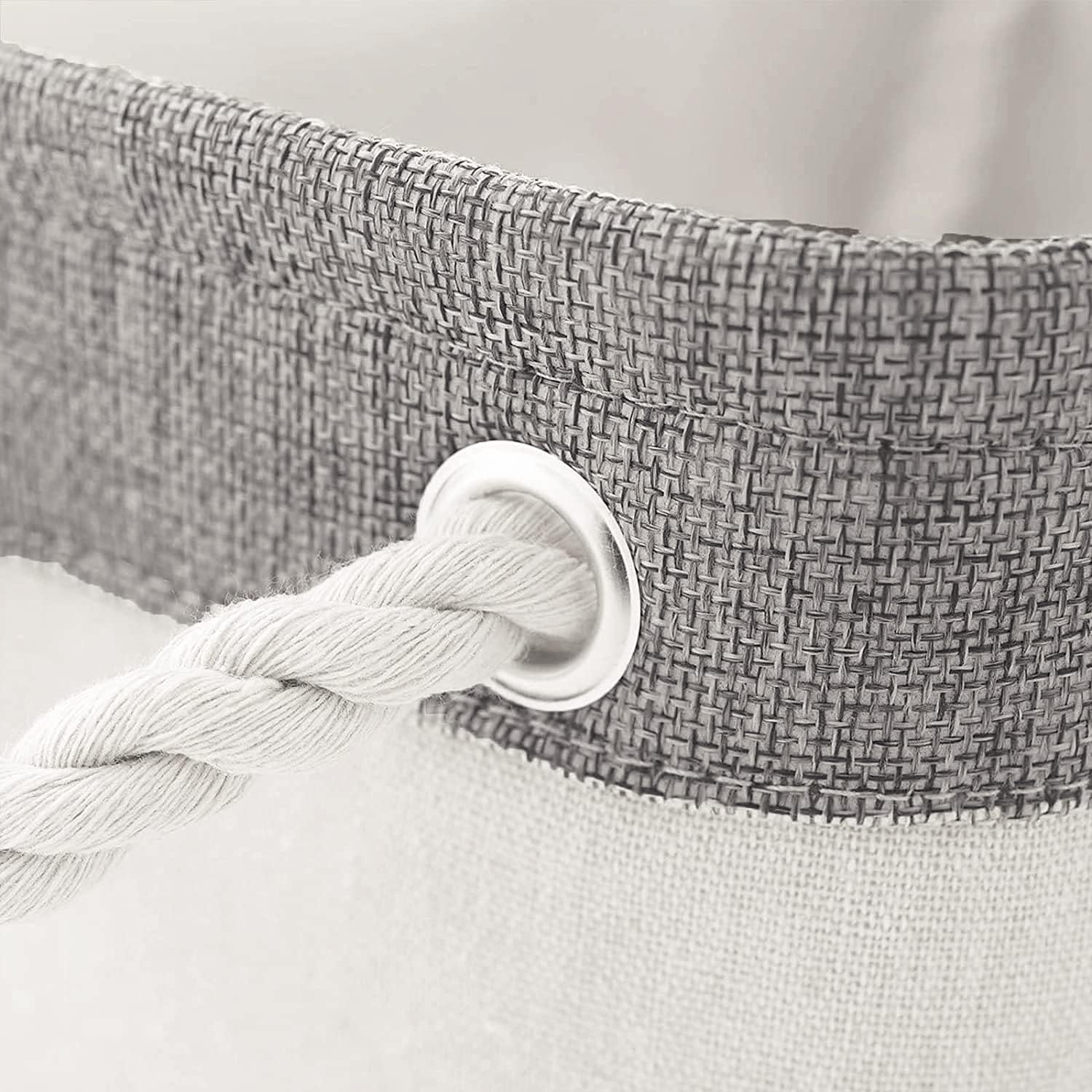 - Made of linen and thicken environmental EVA for reliable performance. Dimensions (each): 11.8 (L) x 7.9 (W) x 5.2 (H) inches.This collapsible basket set provides attractive, lightweight storage. Saves space when not in use and collapses flat for easy storage. It helps keep a room looking neat and tidy. The neutral color combination fits most dΓ©cor while the two side carry handles make it easy to carry