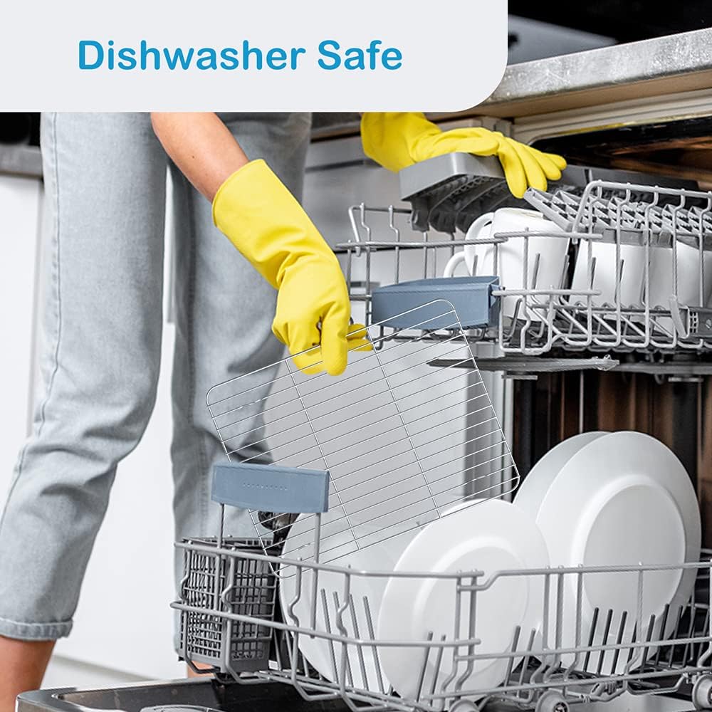 - EASY TO CLEAN: This cooling rack can withstand wet environments like rinsing under the faucet, or it can be washed in the dishwasher without scuffing or fading.
