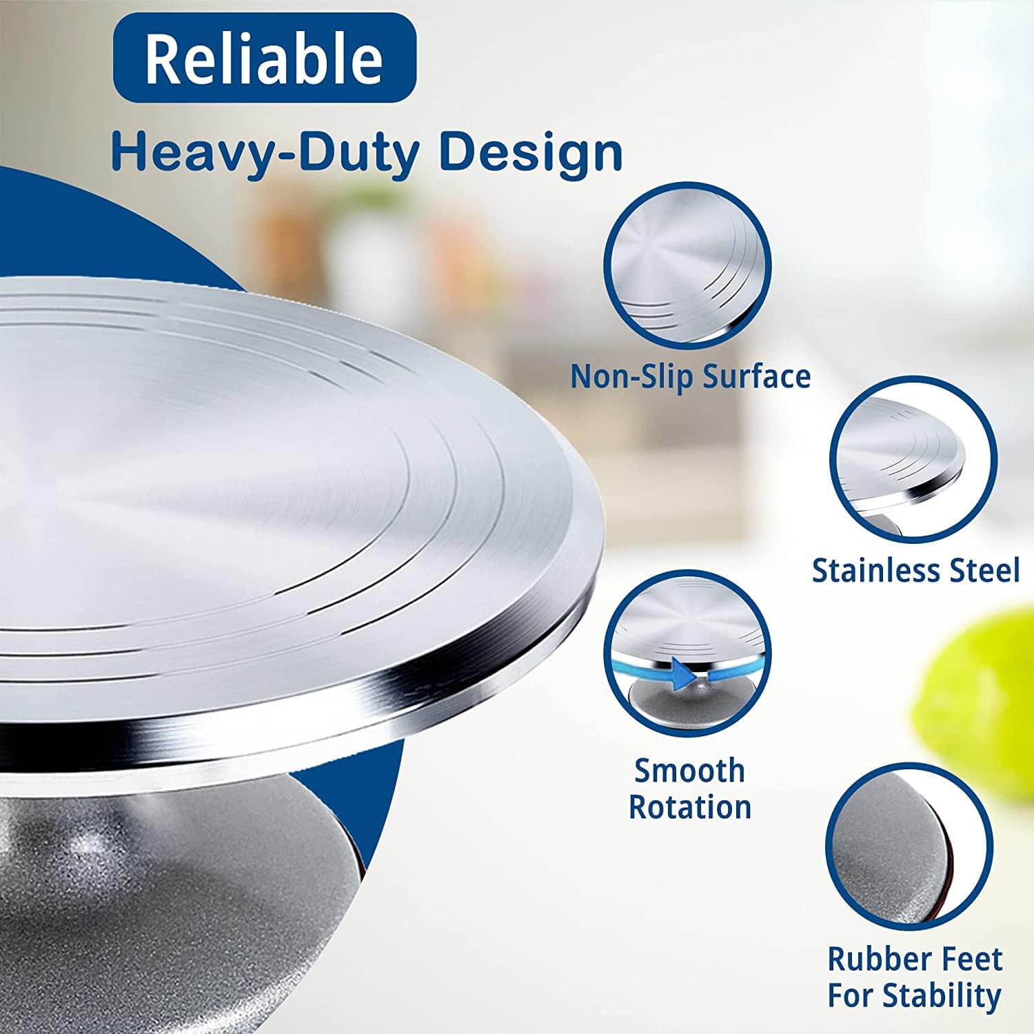 - โ HEAVY DUTY NON-SLIP DESIGN - Revolving decorating stand features an exceedingly solid aluminum alloy construction, non-slip surface and rubber feet for maximum stability & precision cake crafting.