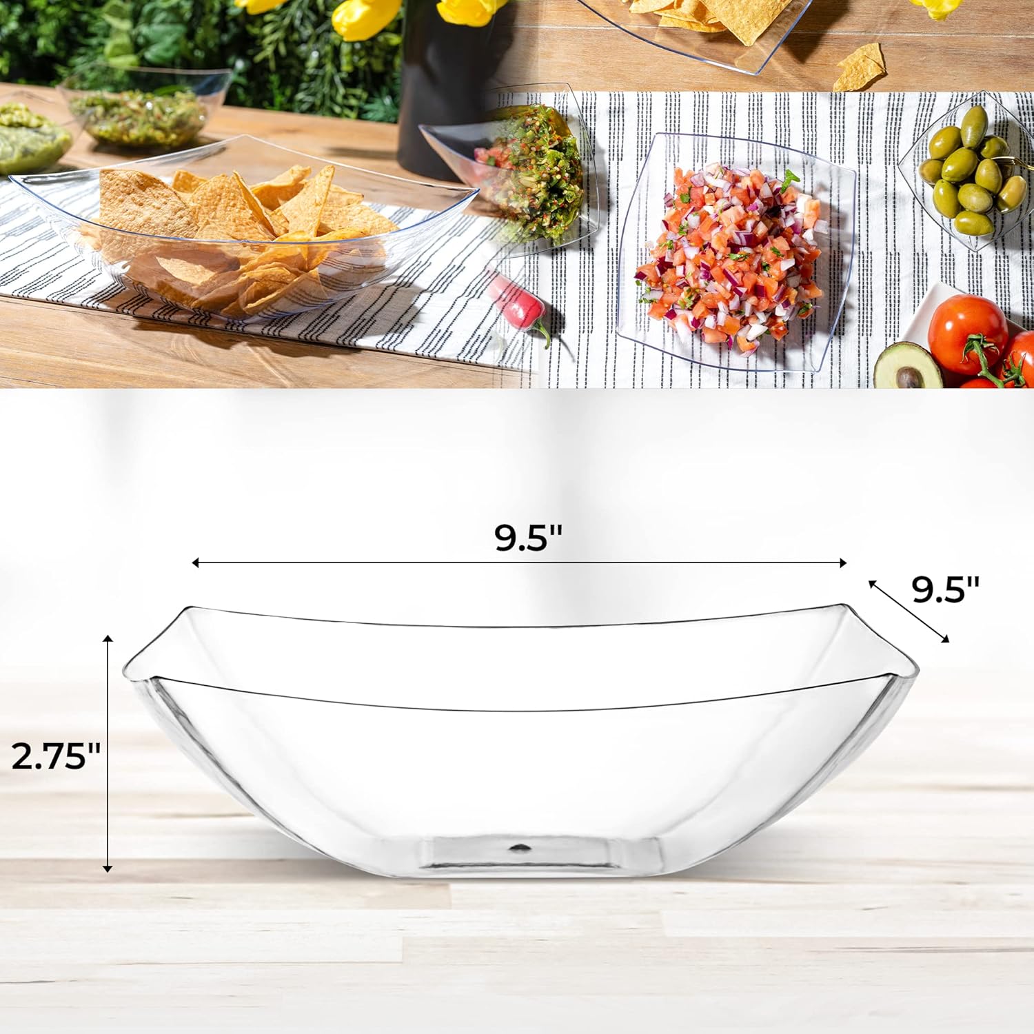- MULTIPURPOSE USE: These 64 oz clear plastic serving bowls are great for any occasion. Whether you're hosting a salad bar, serving snacks, candies, chips, or even using them for arts and crafts, these thanksgiving serving bowls meets all your needs. Enhance your party setup with these practical and stylish bowls that fit seamlessly into any event. Use them as candy dishes, chip bowls for parties, clear plastic bowls, taco bar serving set for a party, and party bowls.