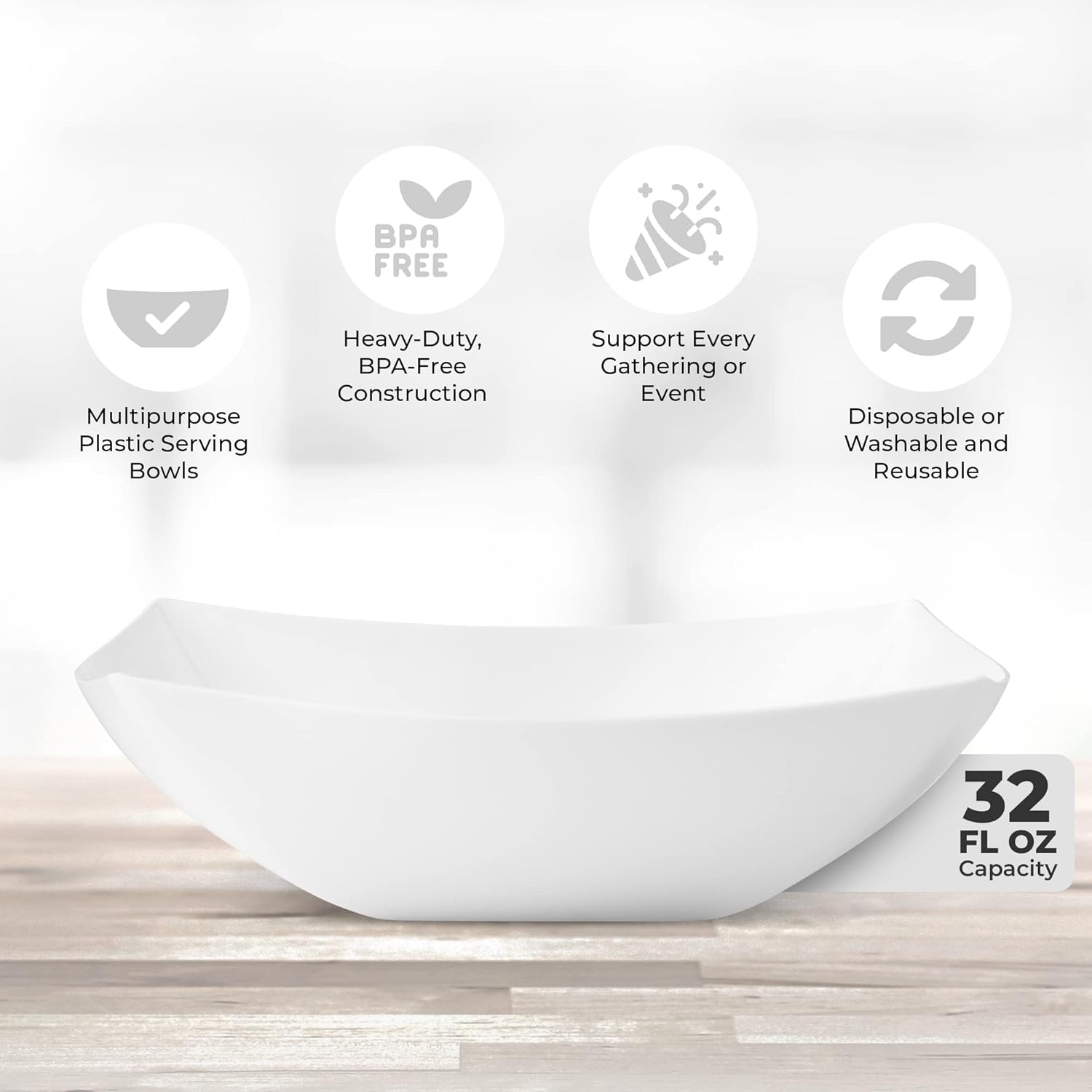 Posh Setting - White Plastic Serving Bowls for Party (32oz - 4 Pack) Square Bowls, Disposable Chip Bowls, Candy Bowls for Party Table, Salad & Fruit Bowls for Party, Candy Containers for Candy Buffet
