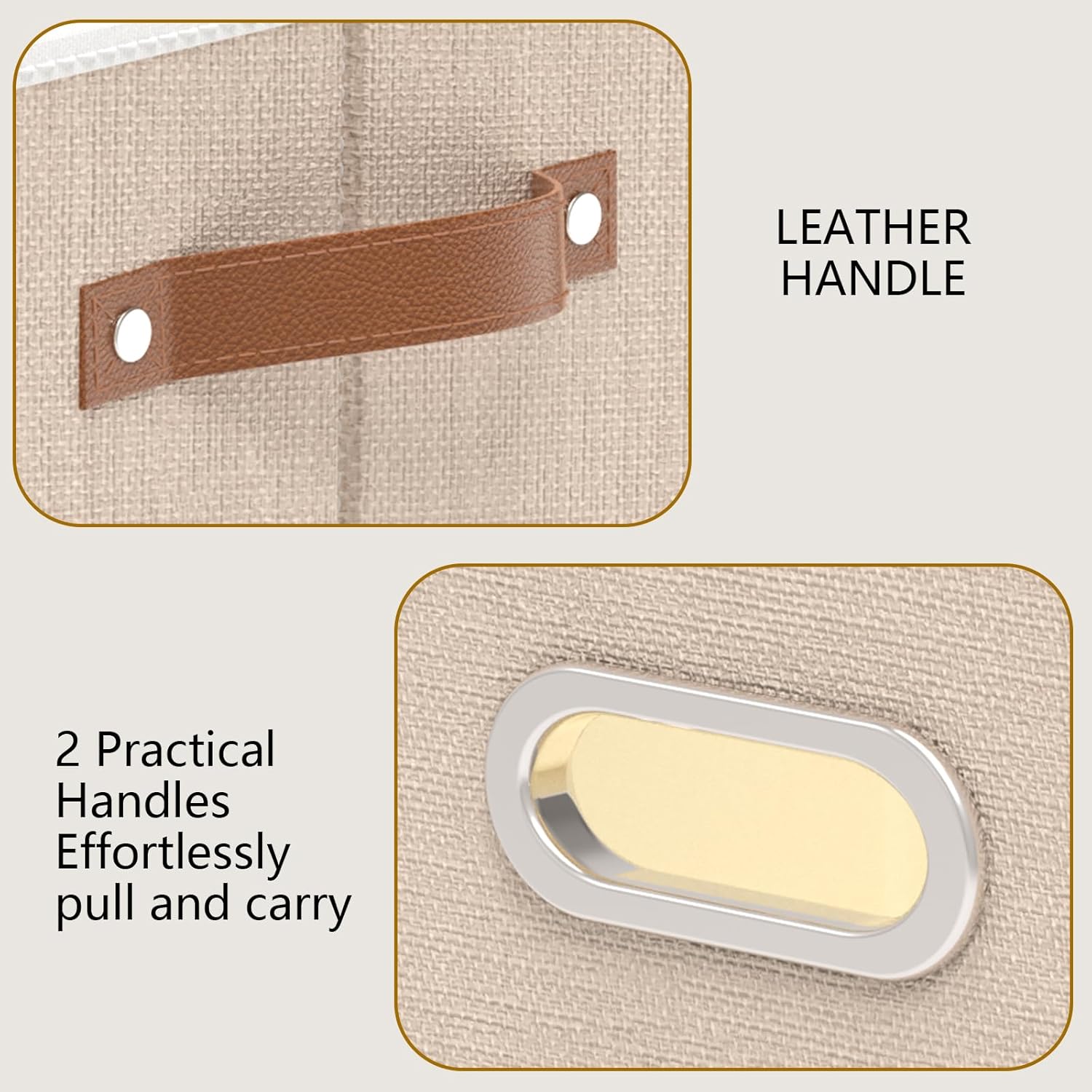 - Design of Storage Box Handle : Adds the vision of fabric storage bins, making it easier to lift the closet storage bins off the floor or pull out from a shelf to access your items, 1 handle is made of stainless steel, not easy to rust