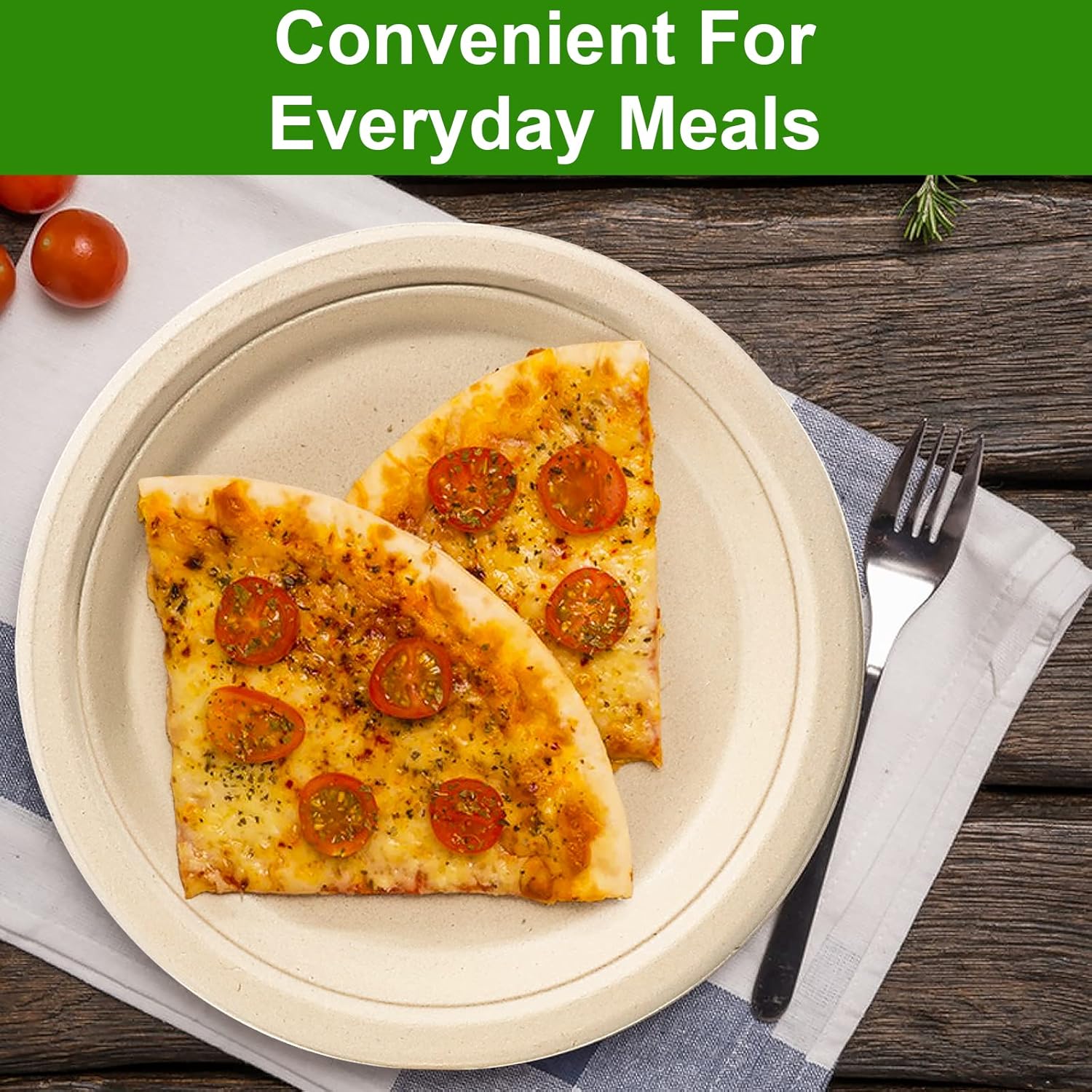 - Disposable Paper Plates: The paper plates 9 inch is the perfect size for dinner lunch, convenient for everyday meals, 100% recycled paper plates for a more sustainable way to enjoy your meals.