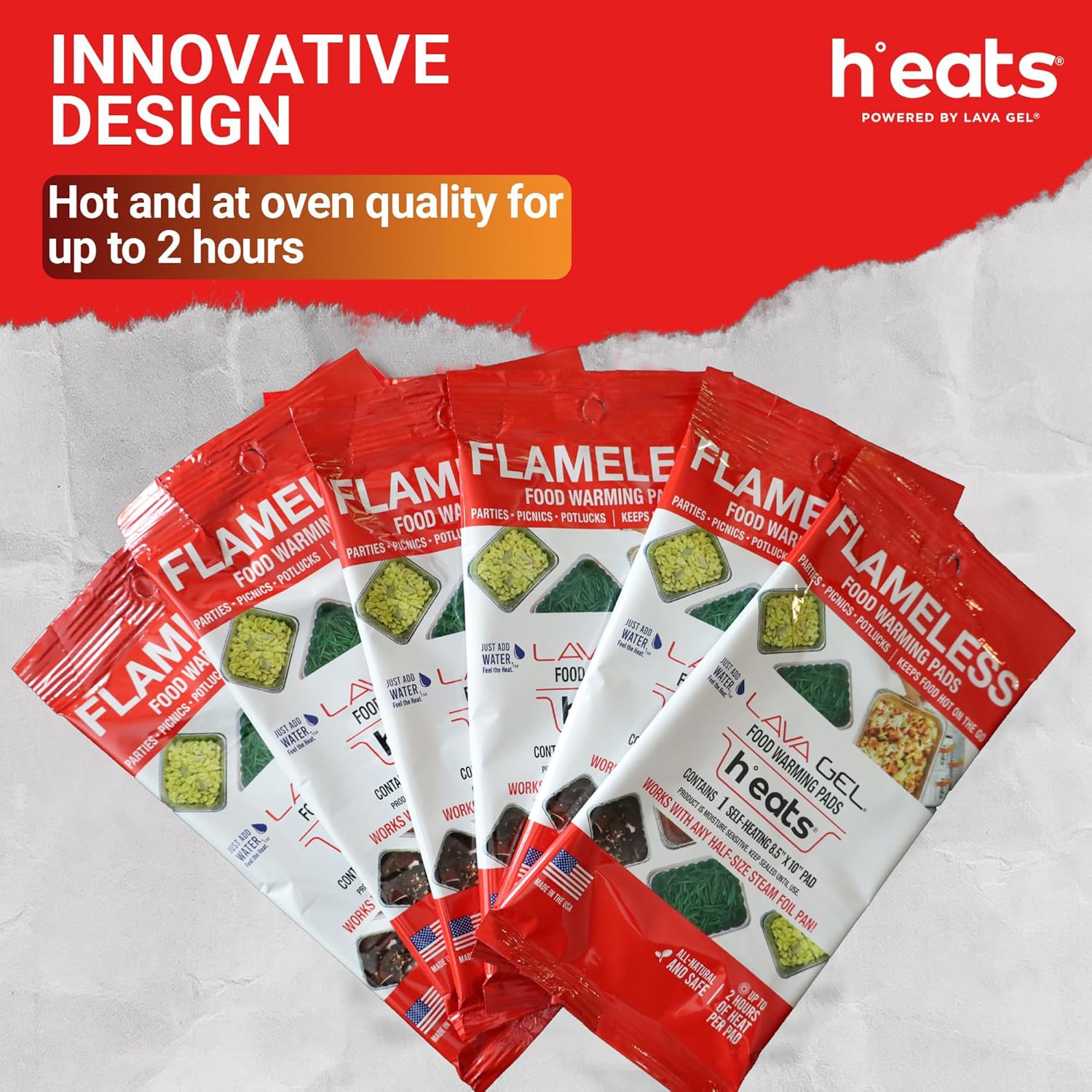 - Disposable Food Warming Pads: Available in packs of 6, our h°eats pads provide a convenient solution for all your food warming needs, whether for parties, potlucks, or daily kitchen use, ensuring your meals stay deliciously warm for extended periods.