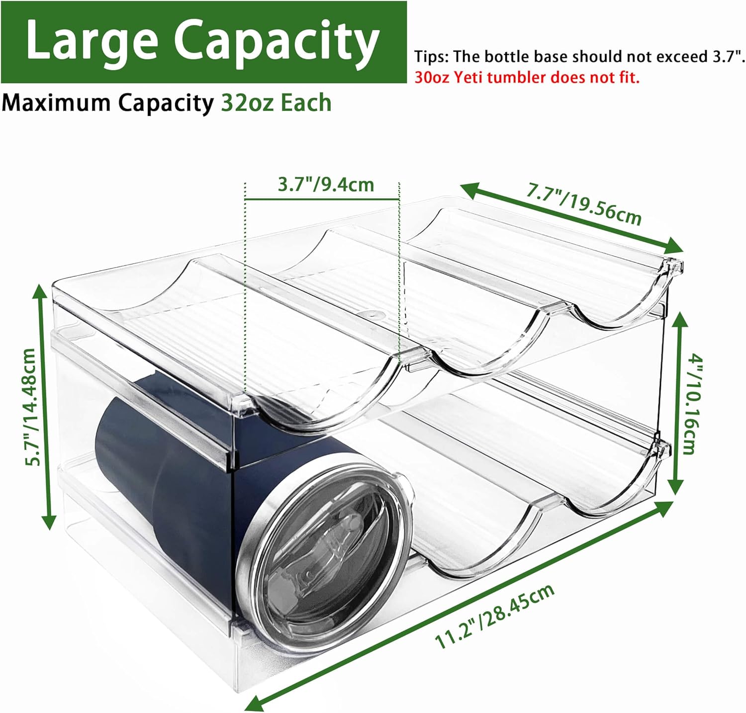 - PATENTED DESIGN: Tumbler storage rack design can help you appropriate storage of more water bottles, we have a patent. 2 pack water bottle holders perfect storage size: 7.7" x 11.2" x 5.7"